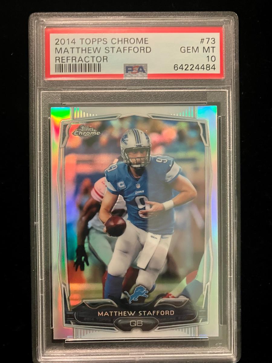 2014 Topps Chrome Matthew Stafford #73 Refractor PSA 10 GEM MINT Lions QB Pop Shine!
