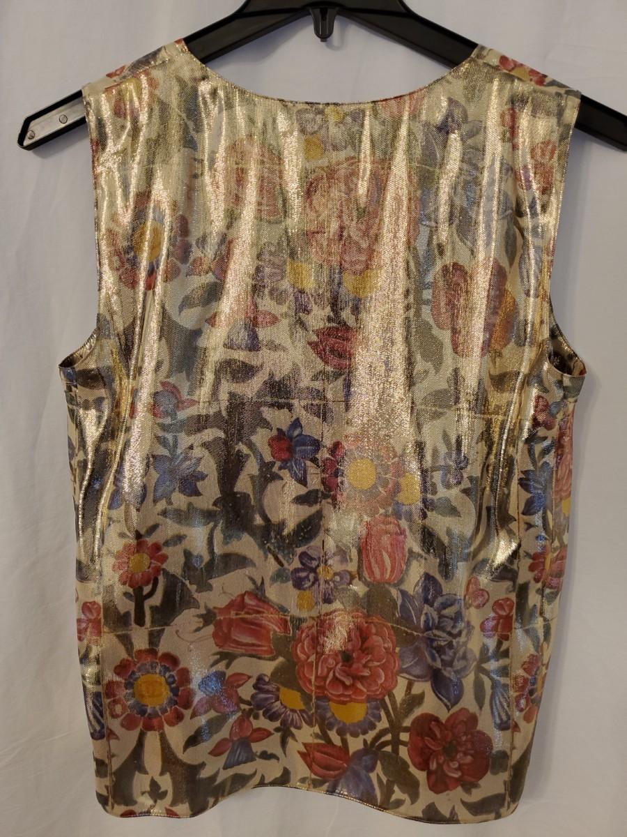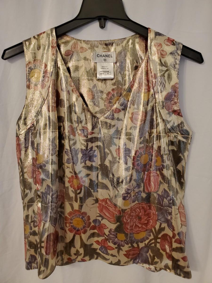 2015 Chanel Resort Collection Lame floral blouse. Silk blend. Made in Italy, size 44.