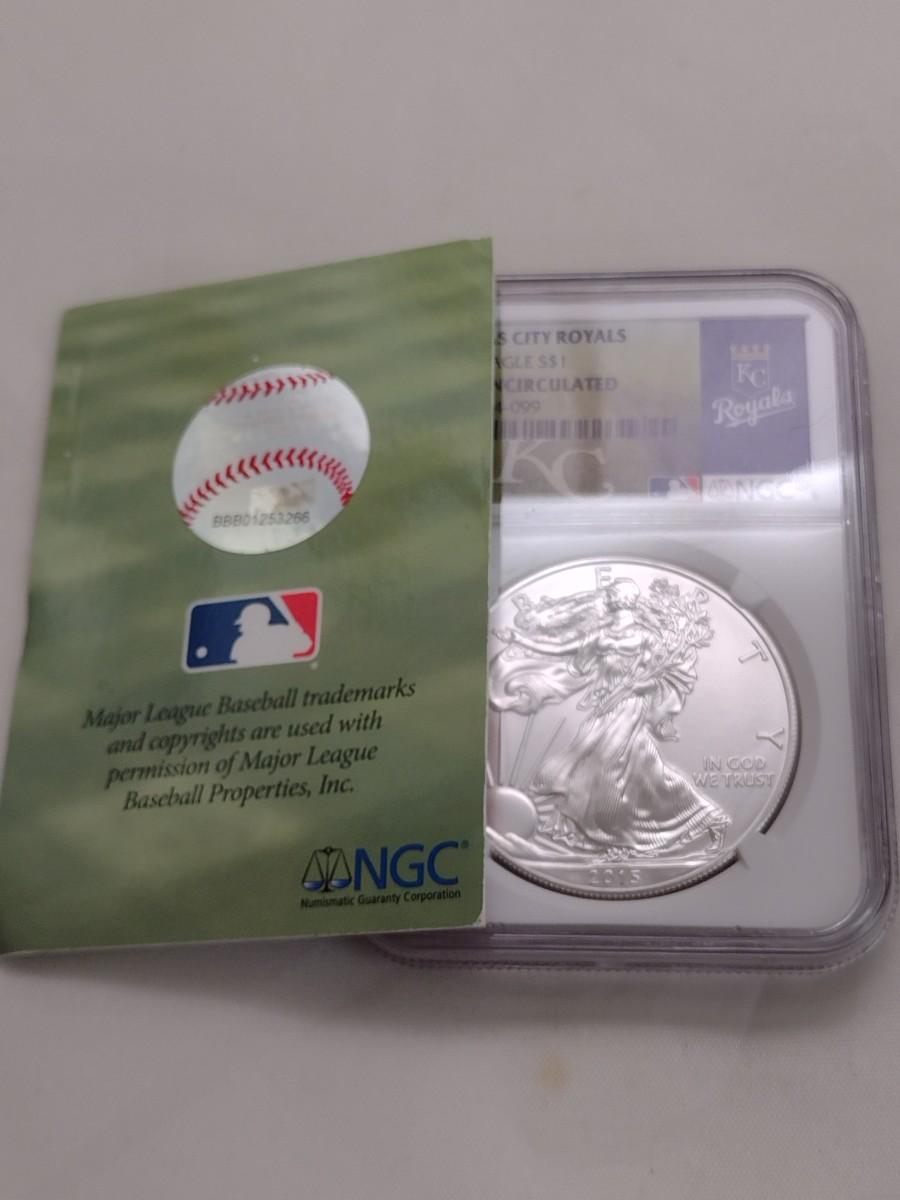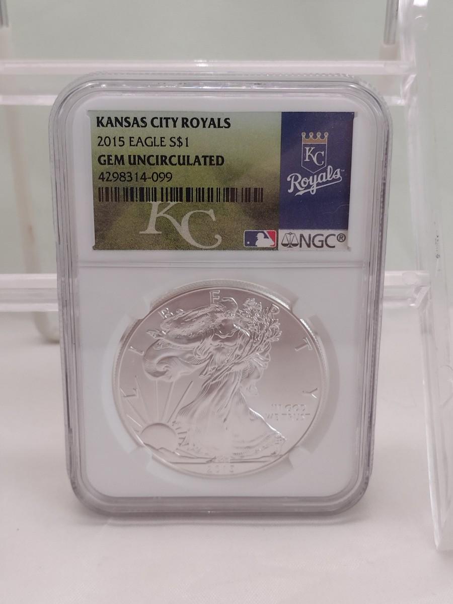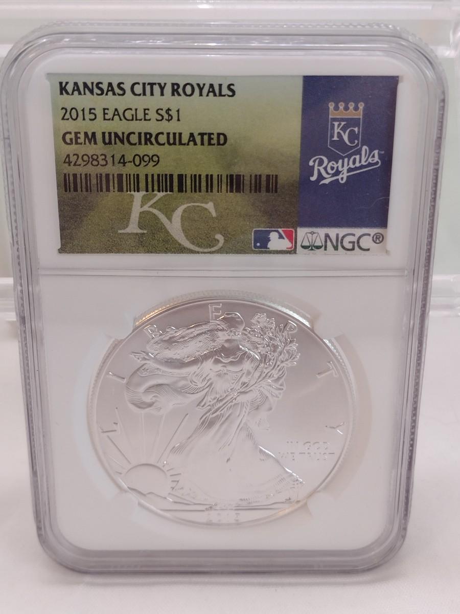 2015 Kansas City Royals MLB Licensed Silver Eagle $1 Coin Gem Uncirculated in Sealed NGC Press Package (#48)