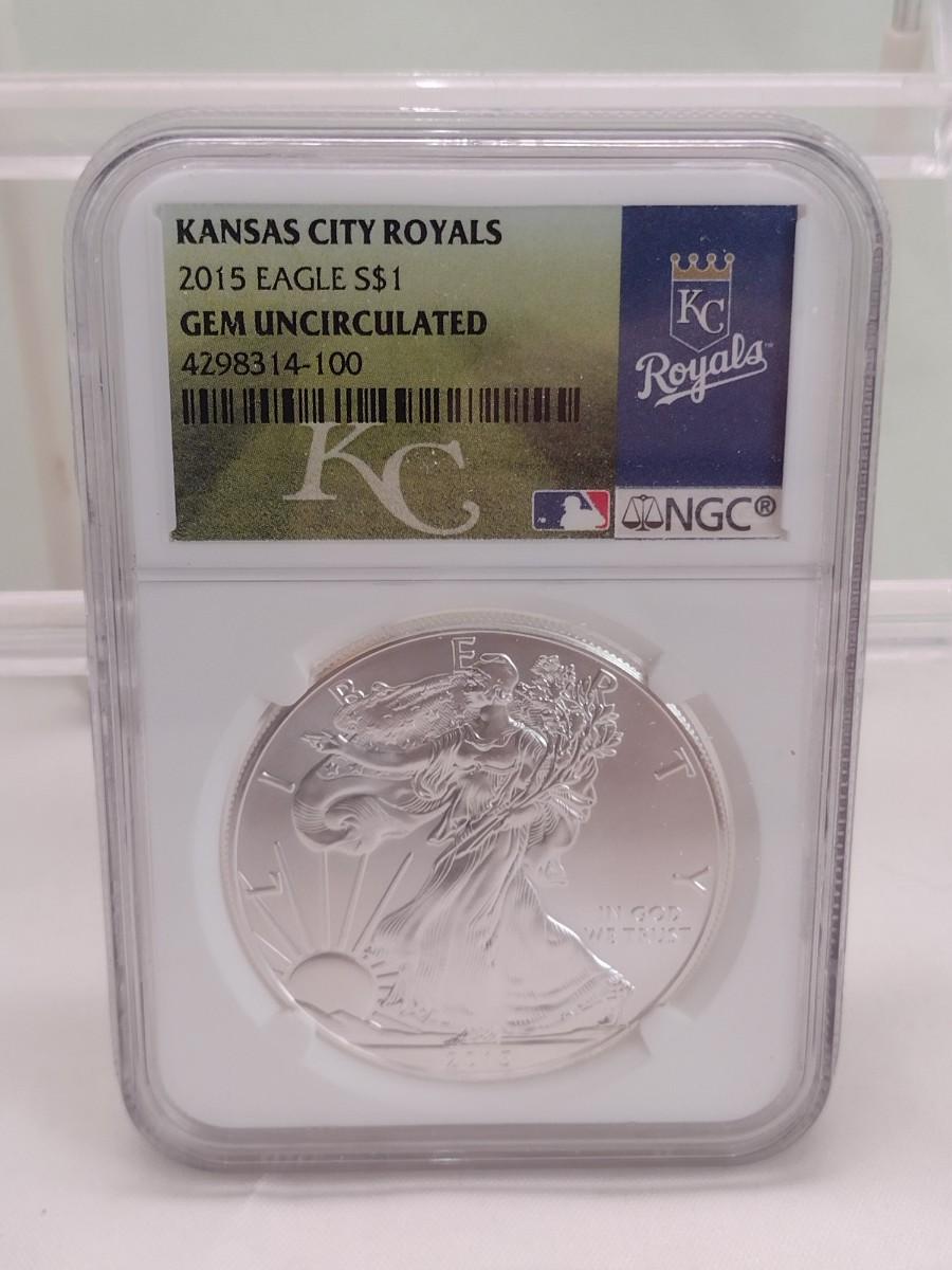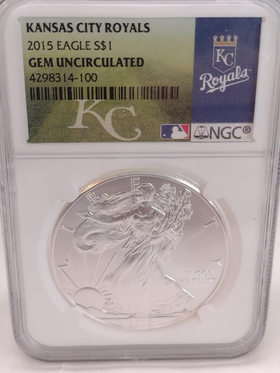 2015 Kansas City Royals MLB Licensed Silver Eagle $1 Coin Gem Uncirculated in Sealed NGC Press Package (#49)