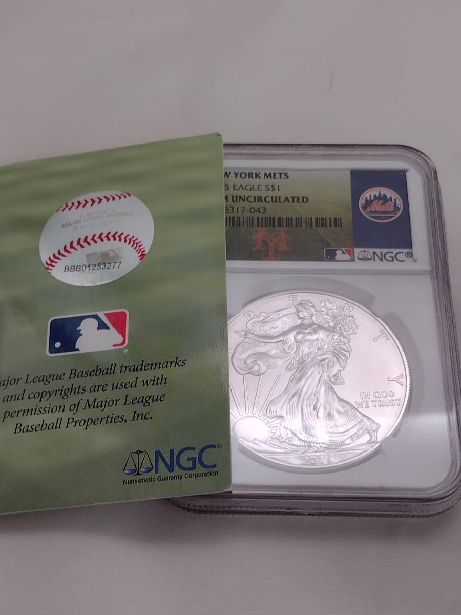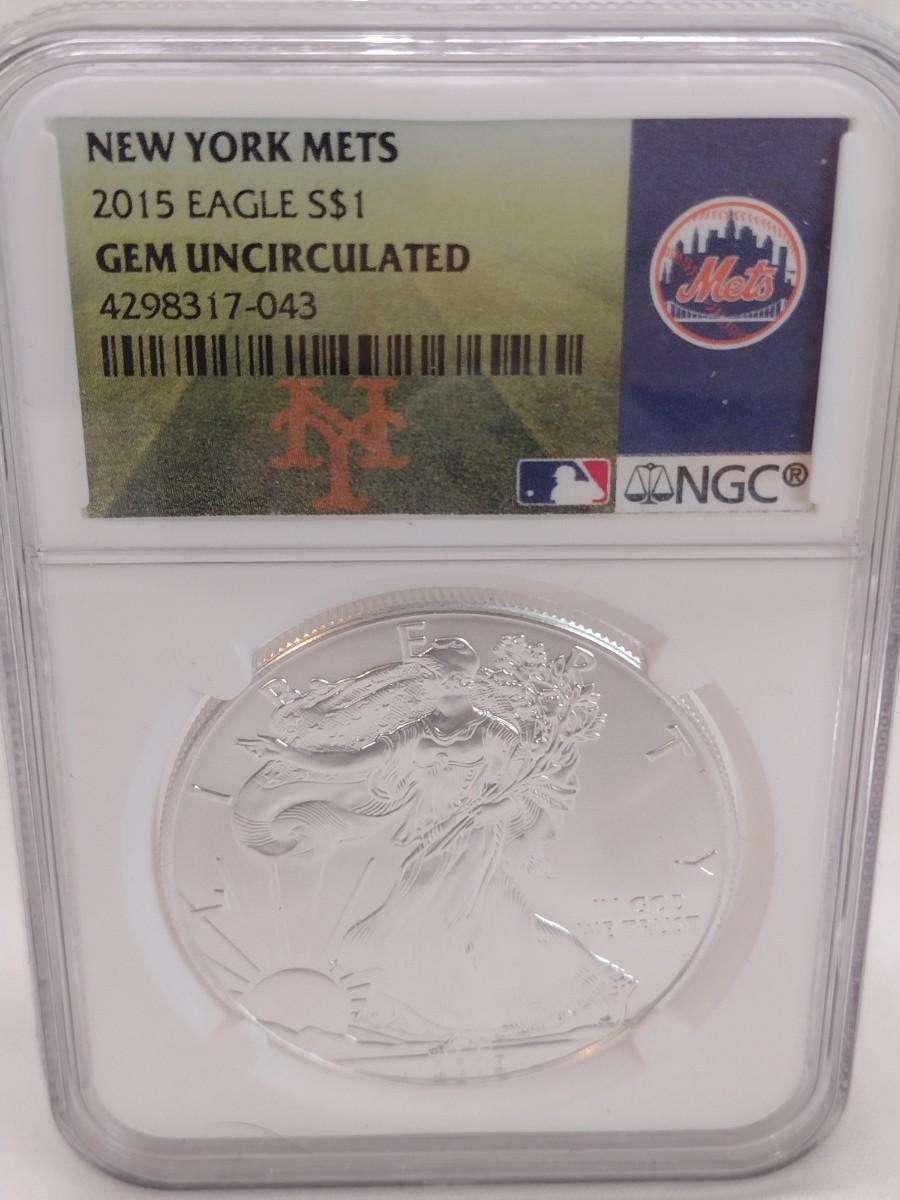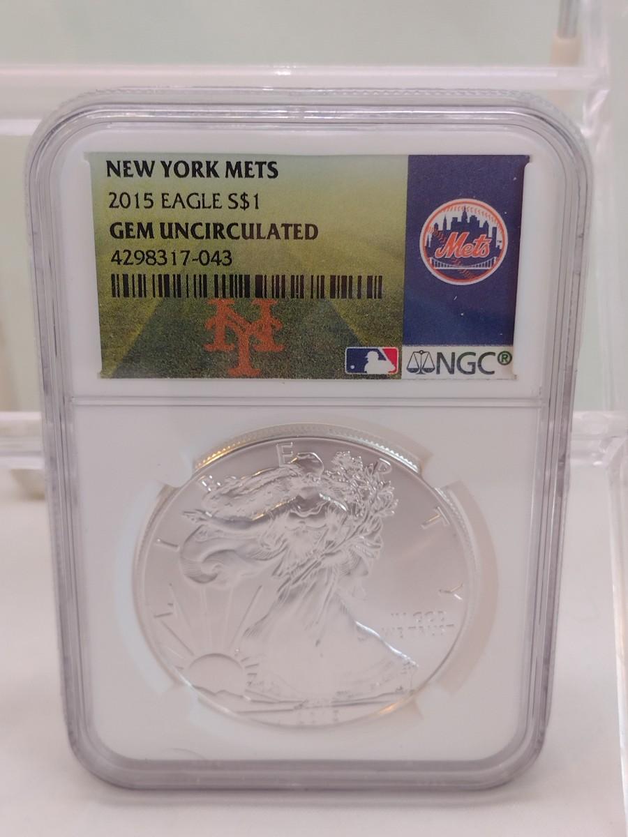 2015 New York Mets MLB Licensed Silver Eagle $1 Coin Gem Uncirculated in Sealed NGC Press Package (#50)