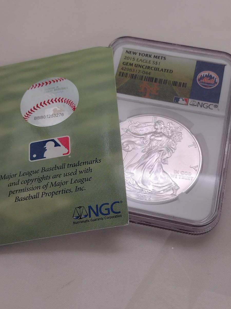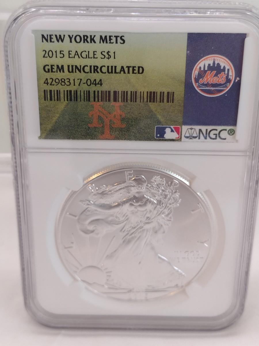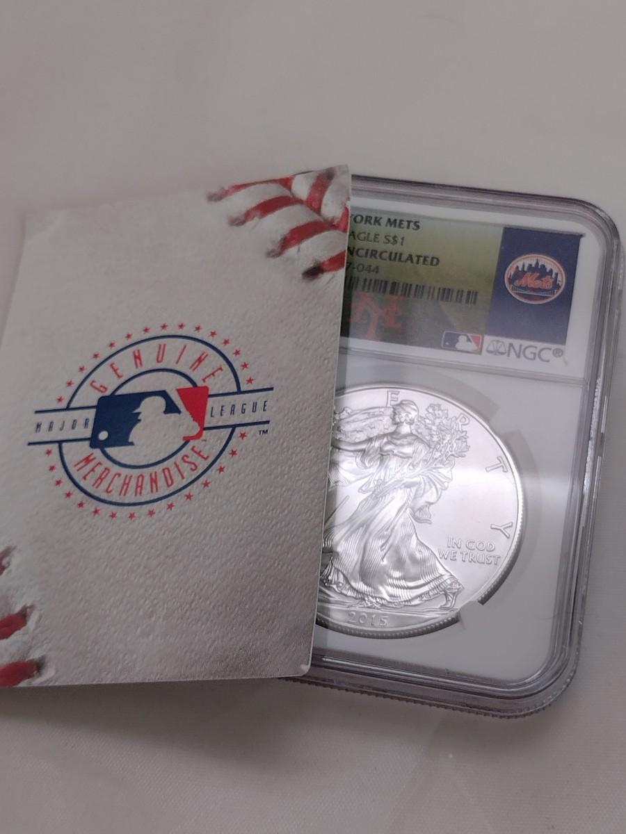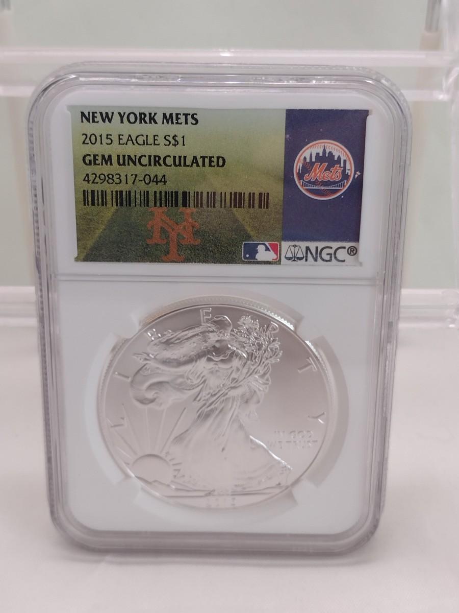 2015 New York Mets MLB Licensed Silver Eagle $1 Coin Gem Uncirculated in Sealed NGC Press Package (#51)
