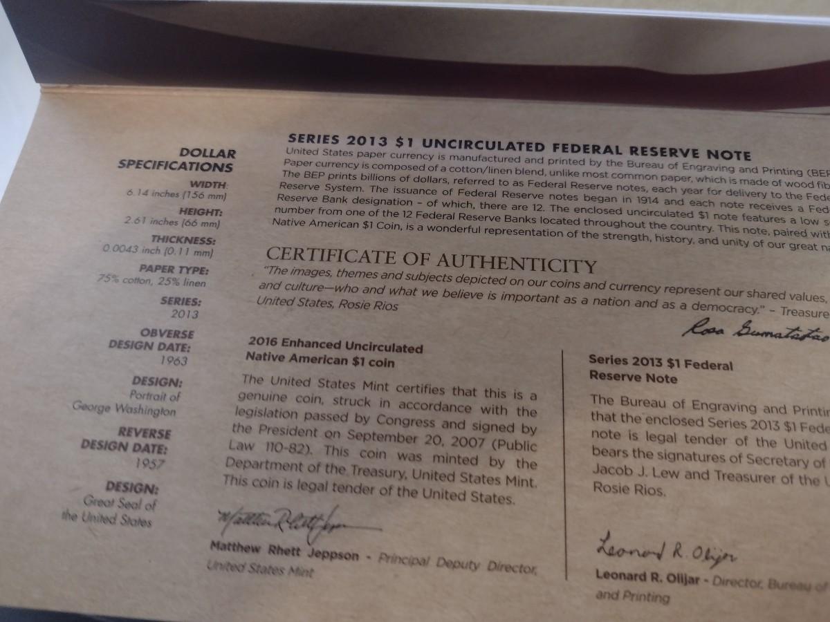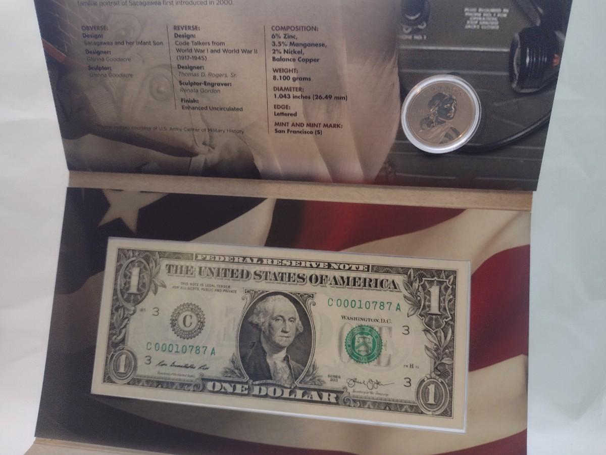 2016 U. S. Mint Code Talkers $1 Coin and Currency Set (#66)