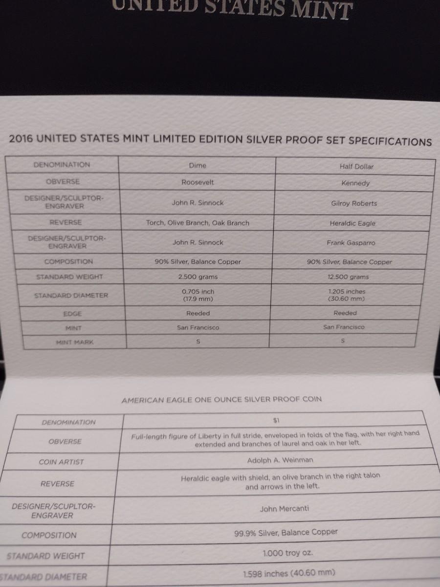 2016 United States MInt Limited Edition Silver Proof Set (#28)