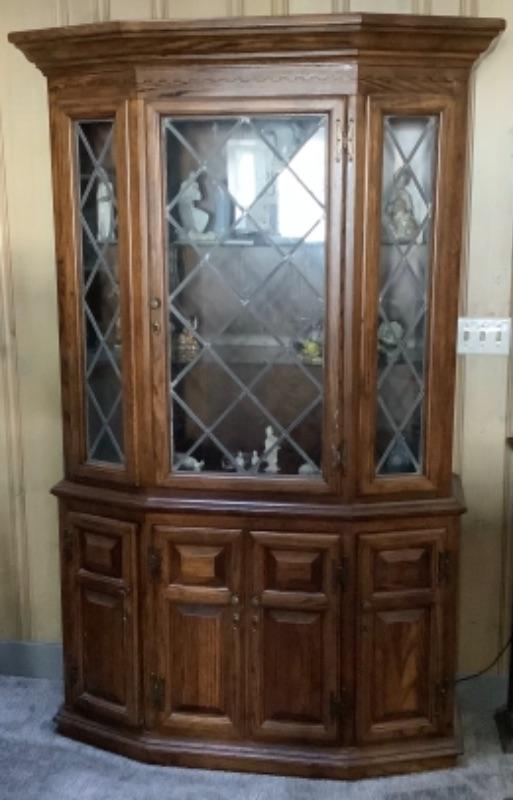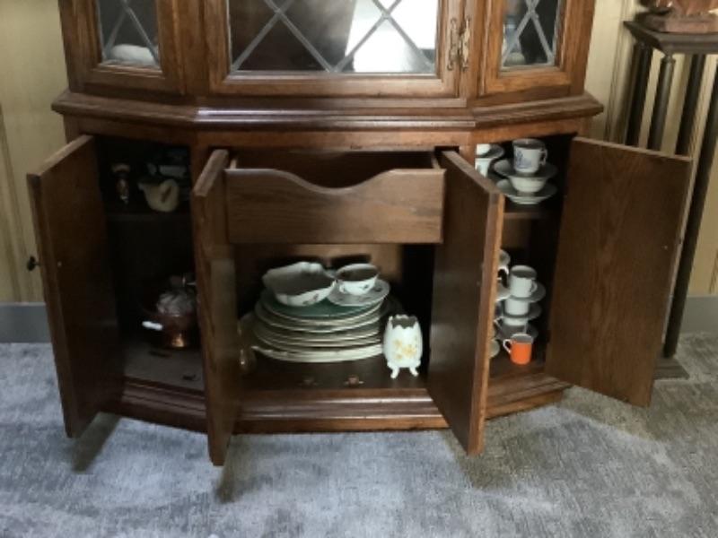 2121 Mediterranean Style Leaded Glass Door Oak China Cabinet