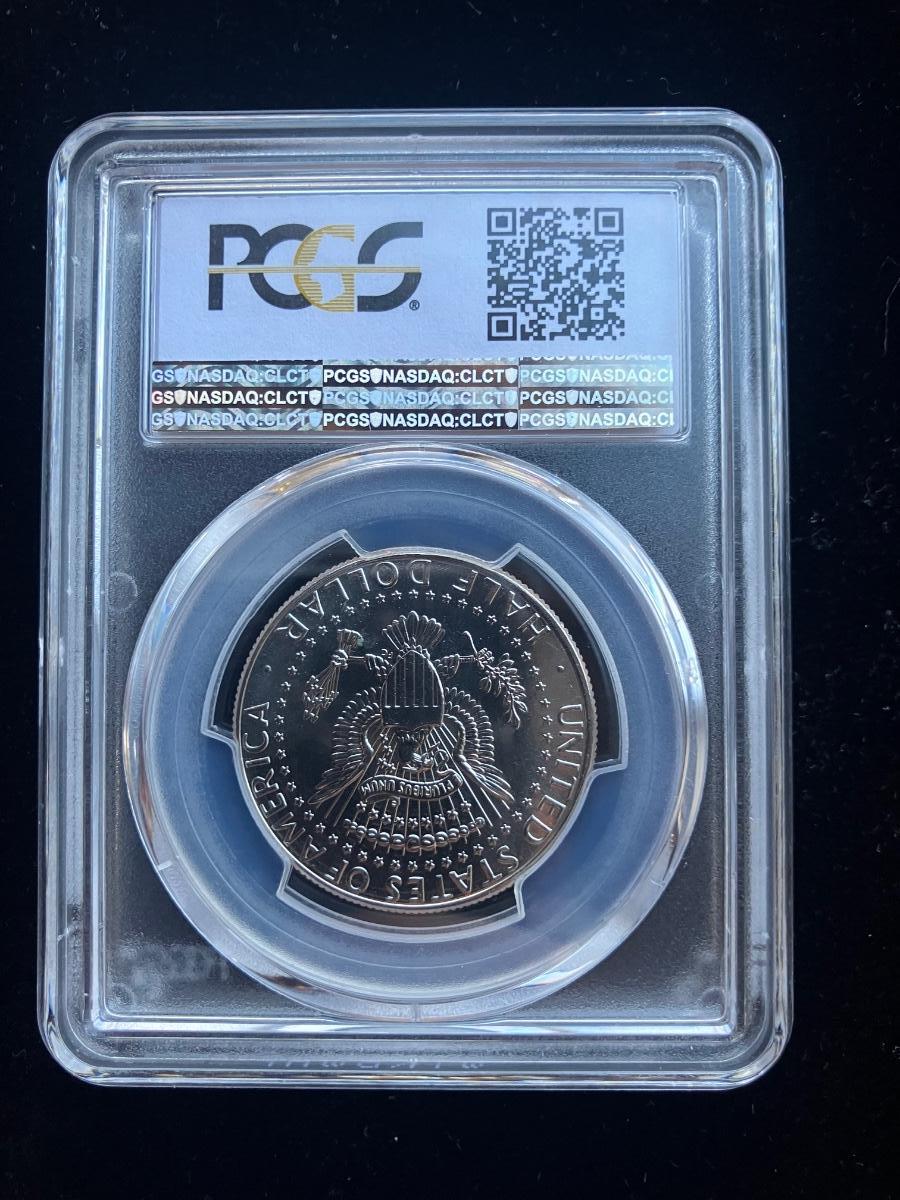 The coin is housed in a secure PCGS holder with clear, bold strikes on Kennedy's portrait and the reverse eagle. No major distractions, spot-free, and fully brilliant.
