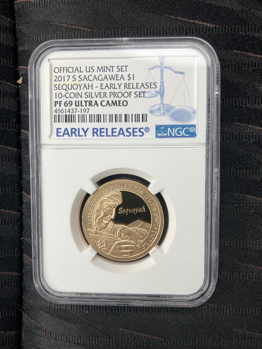 2017-S Sacagawea Dollar (Sequoia Design) – Official U.S. Mint 10-Coin Silver Proof Set – NGC PF69 Ultra Cameo Early Releases