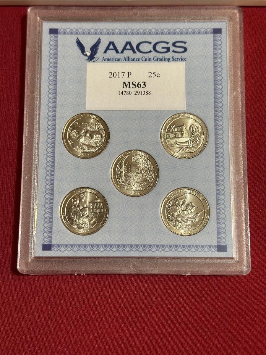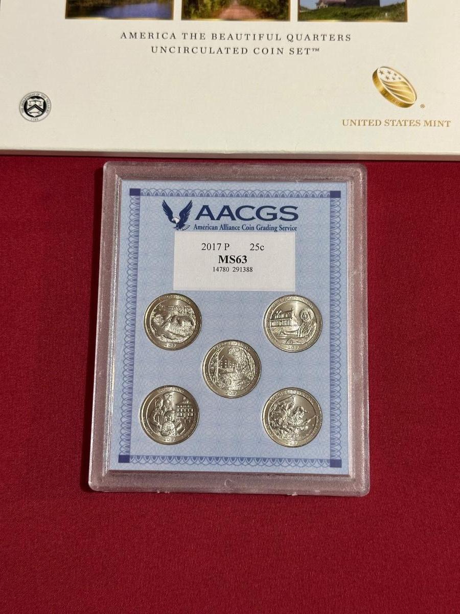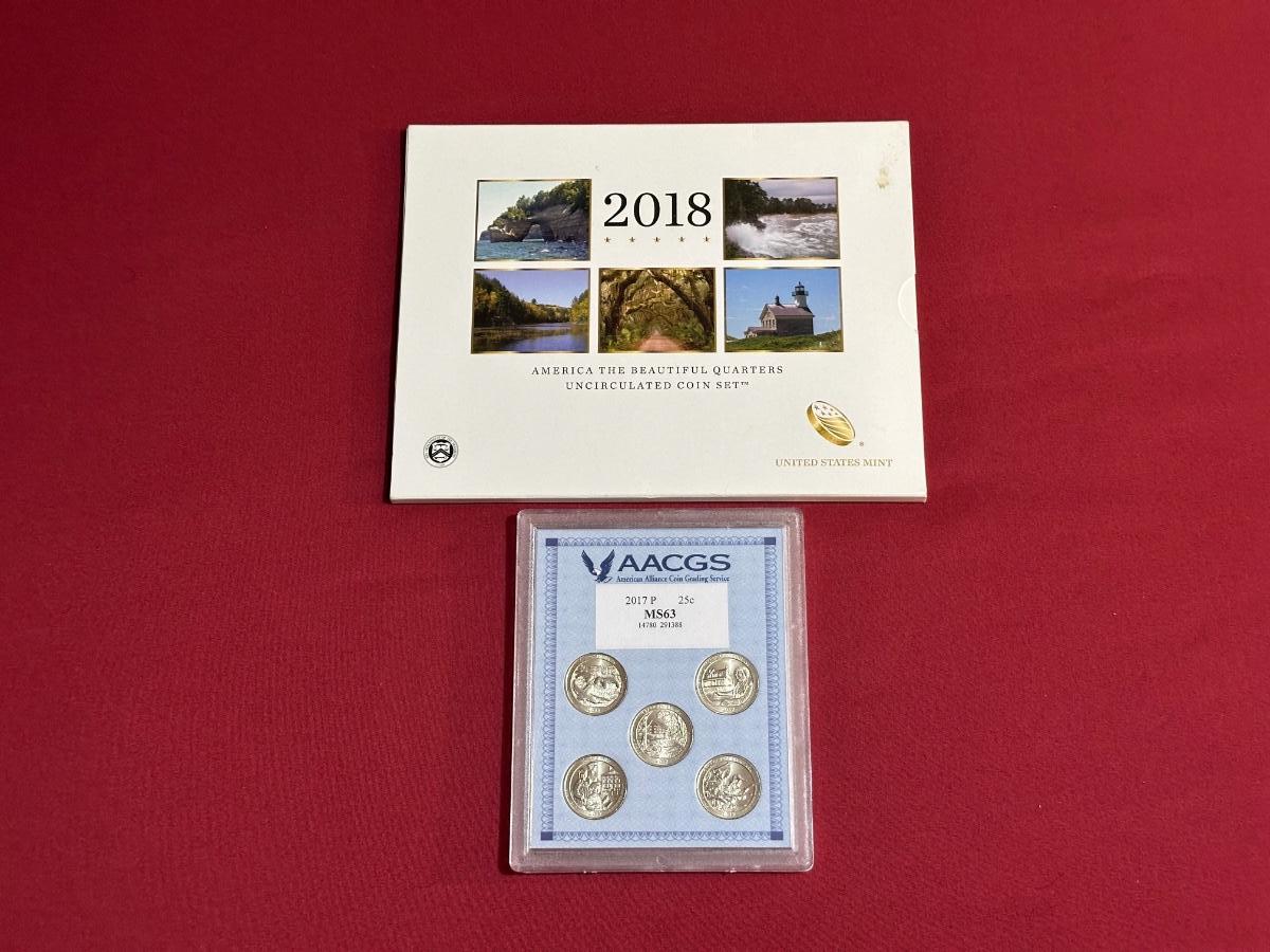 2018 AMERICA THE BEAUTIFUL QUARTERS UNCIRCULATED COIN SET AND GRADED MS63 2017 P-MINT QUARTERS