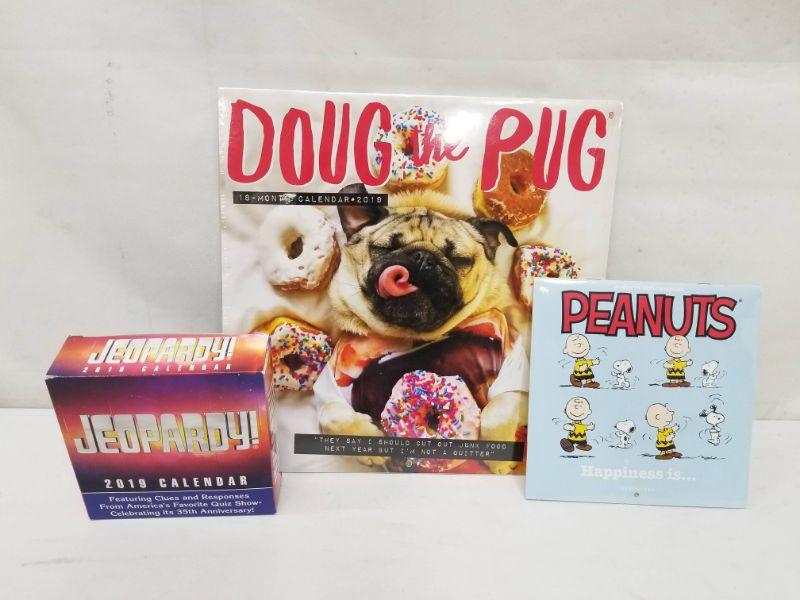 2019 Calendars Set of 3: Jeopardy, Doug the Pug, Peanuts - New