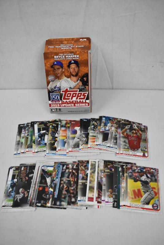 2019 Topps Updates Baseball Hanger Box- 2 Exclusive Bryce Harper Highlight Cards | 2 Perennial All Stars inserts. 65 Cards. Open. Condition is New