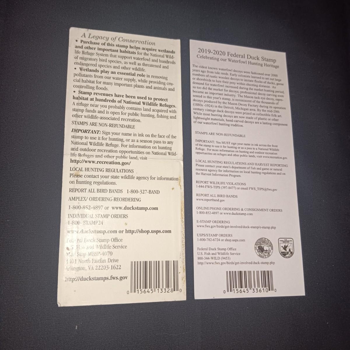 2019-2020 & 2004-2005 US FISH & WILDLIFE MIGRATORY BIRD HUNTING AND CONSERVATION STAMPS