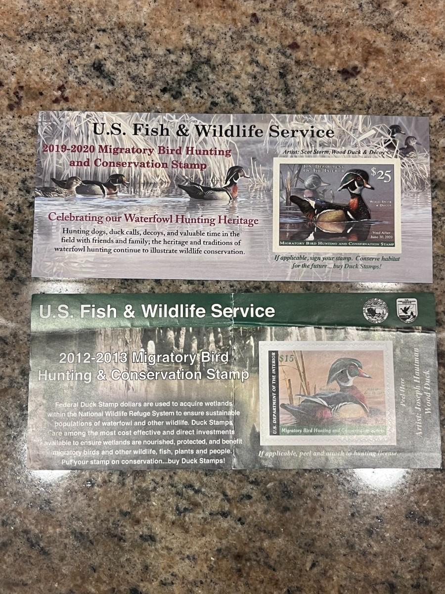 2019-2020 & 2012-2013 US FISH & WILDLIFE MIGRATORY BIRD HUNTING AND CONSERVATION STAMPS