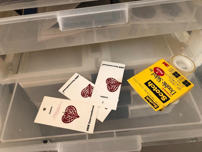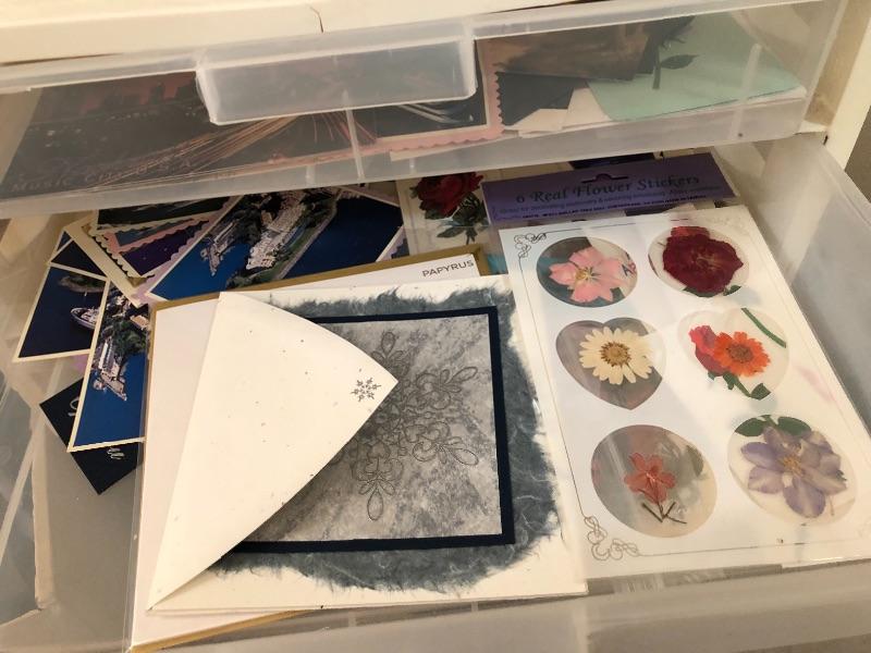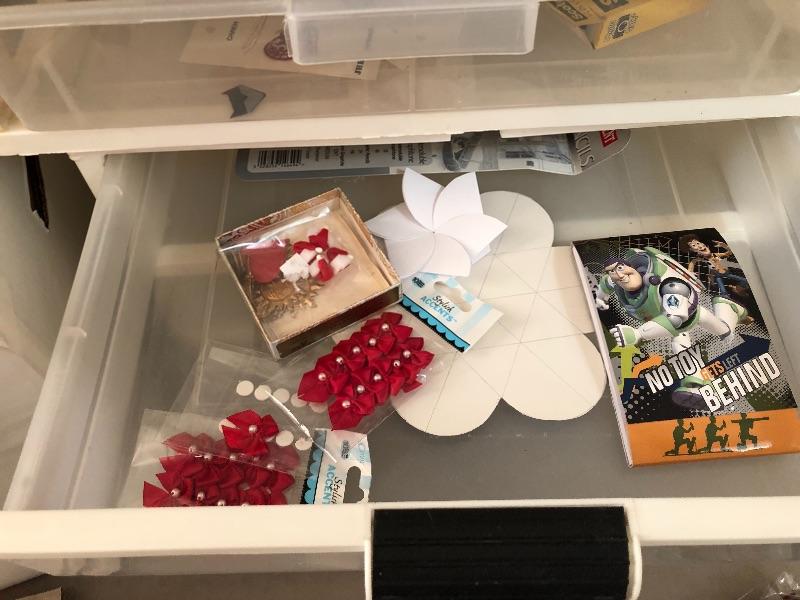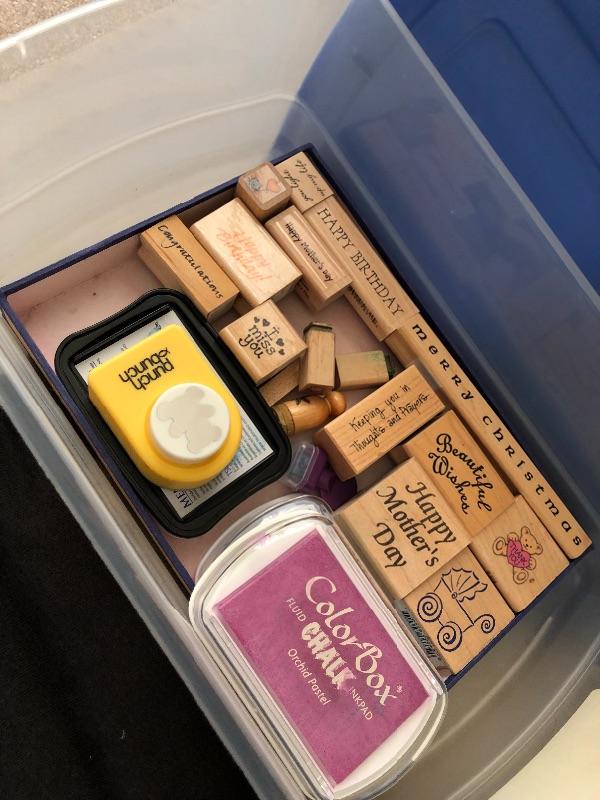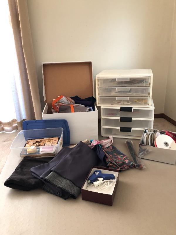 Fiskars Paper cutter, glue gun, fabric, stickers, storage bins, stamps and more.