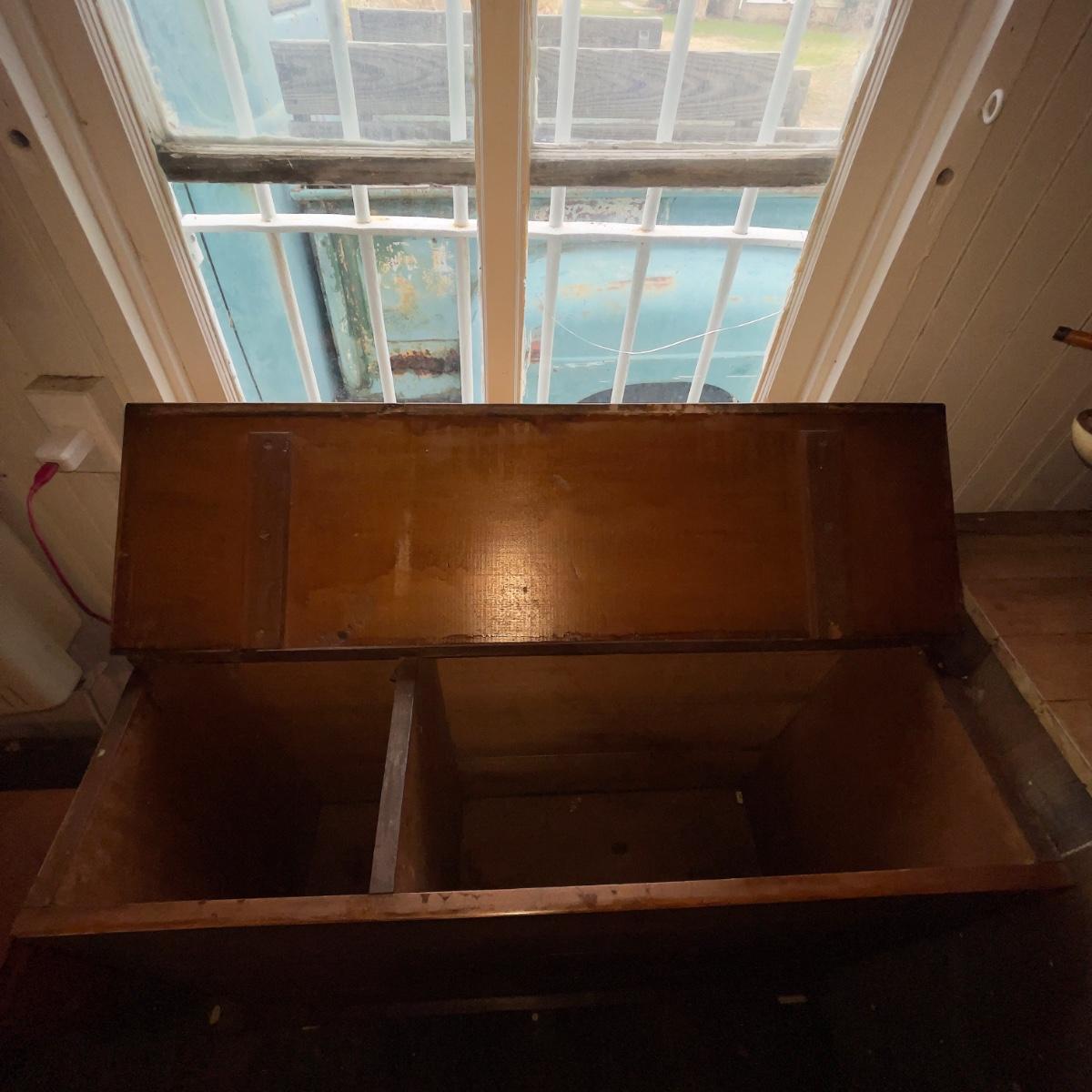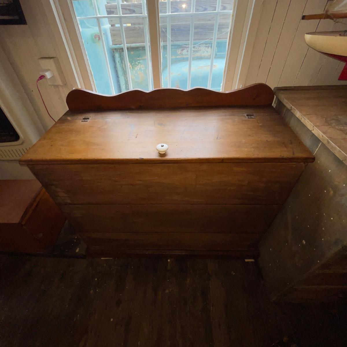 Antique 19th Century Pine Grain Bin. Overall terrific shape and can be repurposed for a variety of uses. Center porcelain knob.