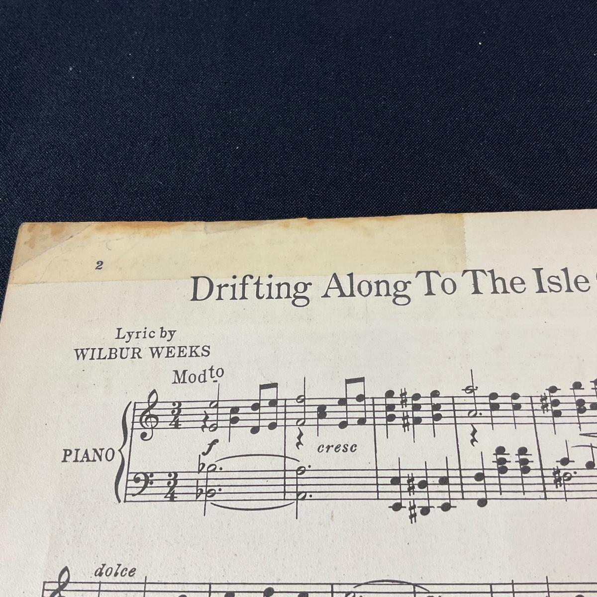 One Drifting Along To The Isle Of Love Lyrics By Wilbur Weeks Music By M. Alexander piece of Sheet Music. Please see photos for details and condition. Any condition statement is given as a courtesy to a client, is an opinion, and should not be treated as a statement of fact. Reference to condition written, oral or within a condition report shall not be regarded as a full account of condition and may not include all defects, alterations, or restorations. Absence of a condition report does not imply a lot is flawless or lacking imperfections or damage. Katherine’s Auction & Appraisal Service shall have no responsibility for any error or omission. Returns shall not be accepted on the basis of condition. ::: Shipping is available on this lot. If you require shipping you must let us know at the close of the auction. We will coordinate with you after the item has been won. Shipping fees will include insurance up to or exceeding the value of all items being mailed. If you have any questions regarding this lot please contact the auctioneer either via this website, by direct email or by phone. PICK UP TIMES and other important information can be found in the TERMS and DESCRIPTION of the auction. Please take a look for pertinent information. Thanks!