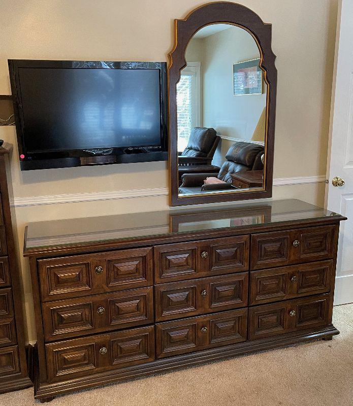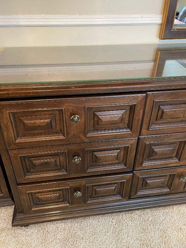 #202 Mediterranean Glass Top Dresser and Mirror