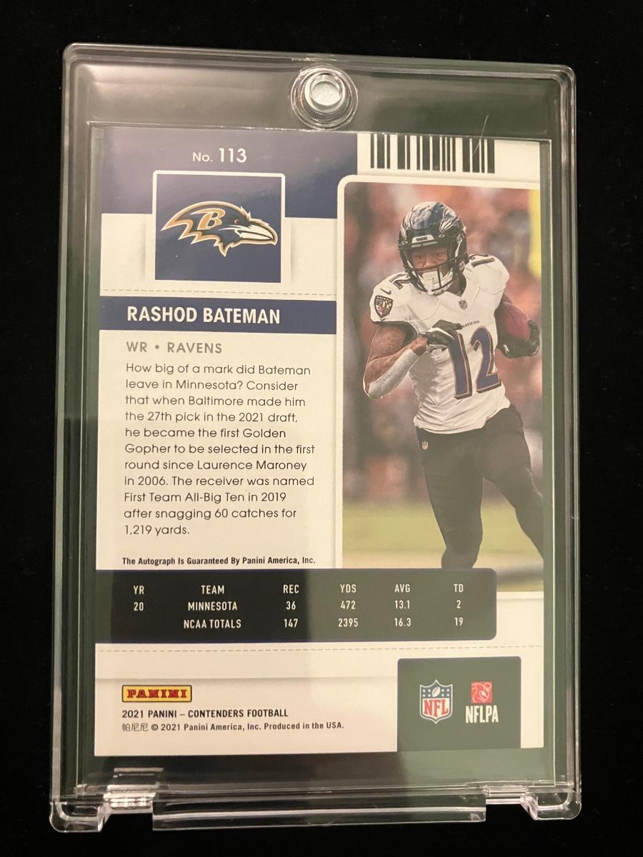 2021 Panini Contenders Rashod Bateman Rookie Ticket On-Card Auto RC Ravens