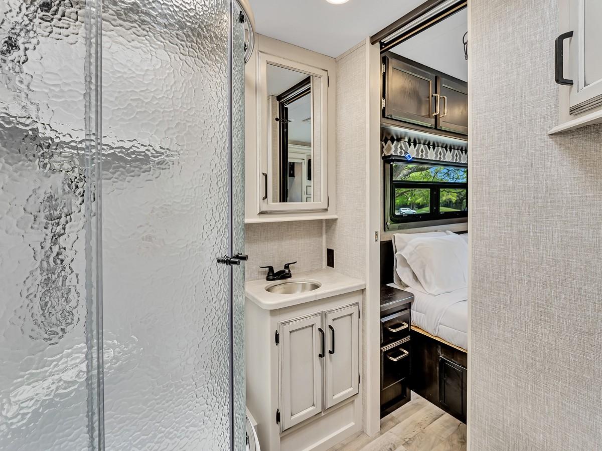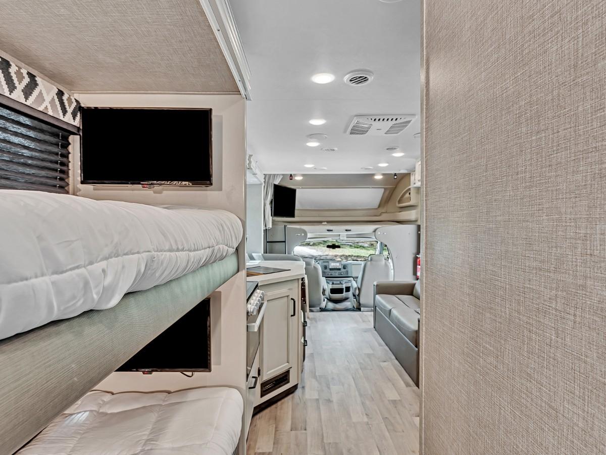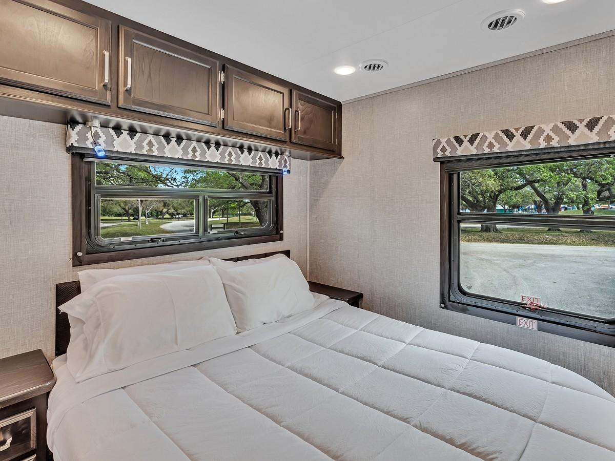 Sleeps Options: Queen Bed, Bunkhouse, Dinette, Overhead bunk