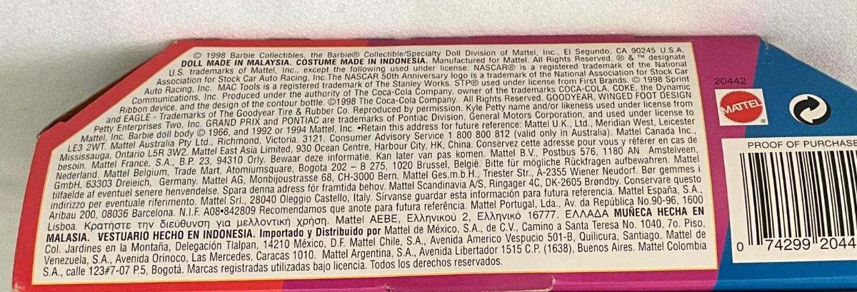 1998 Barbie NASCAR 50th Anniversary Special, Mint/Excellent Unopened