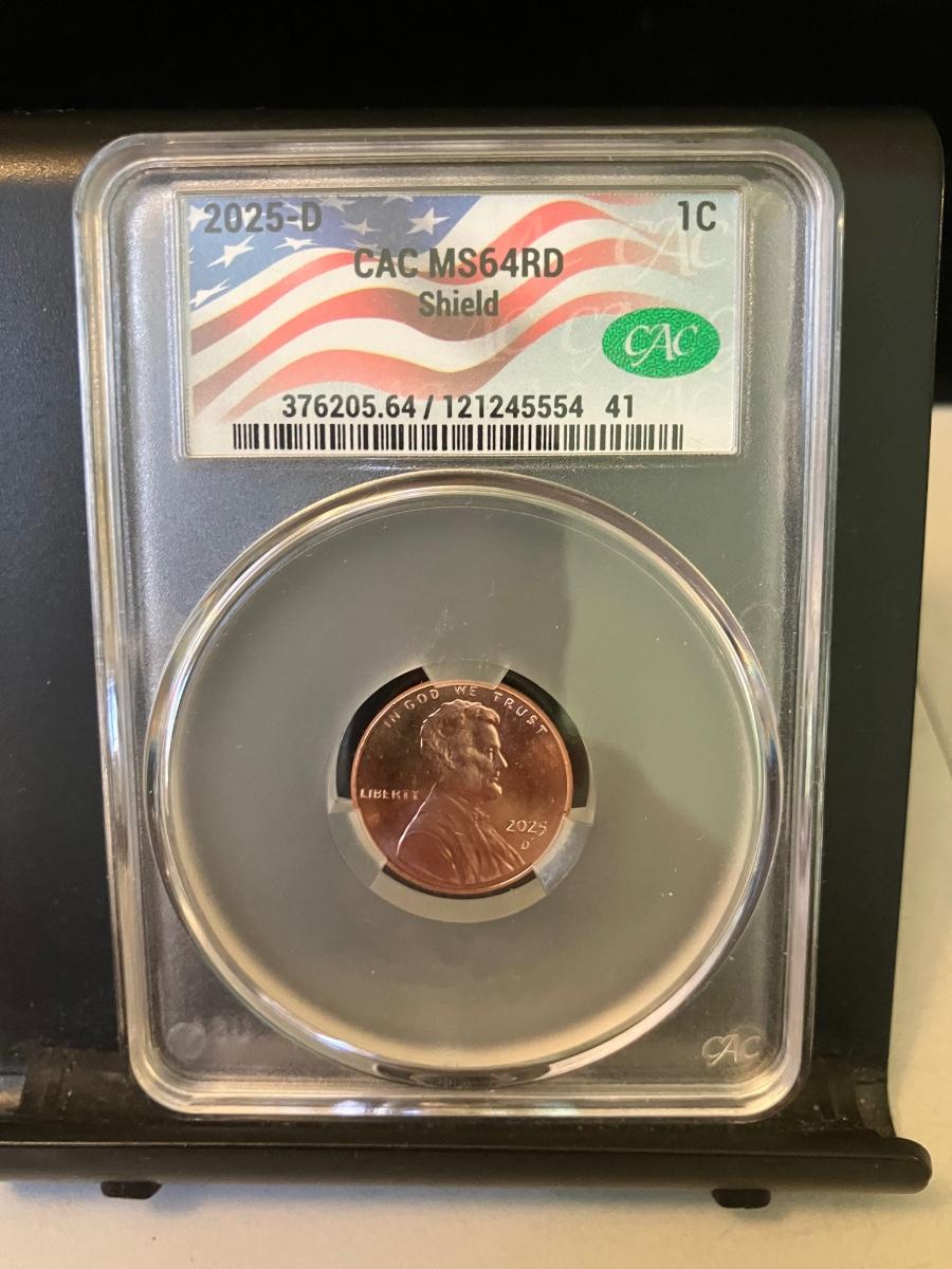 2025-D Lincoln Shield Cent - CACG MS64RD with Green Bean & Patriotic Flag Label (Final Year of Issue)