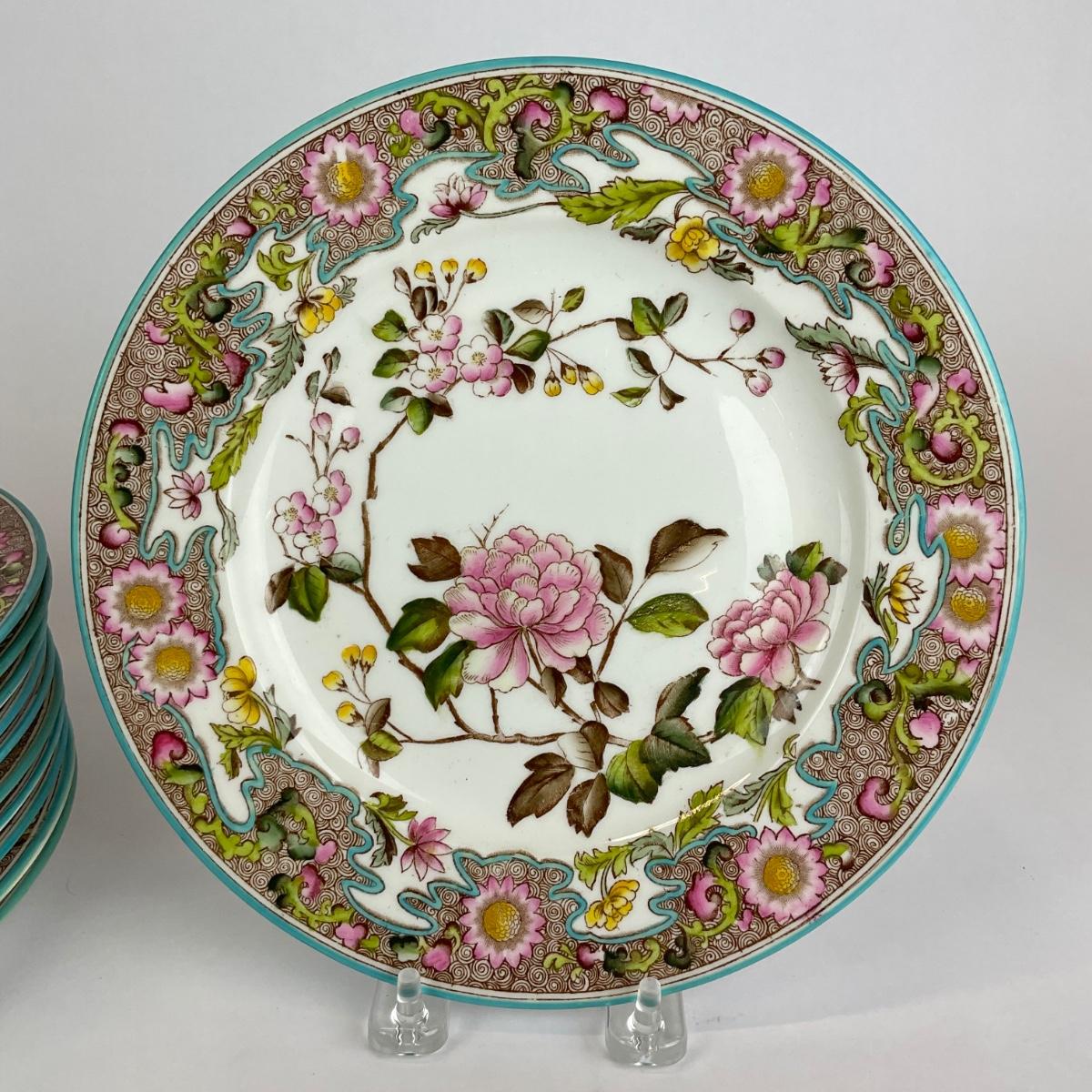 203 George Jones & Sons Set of 11 Polychrome Luncheon Plates