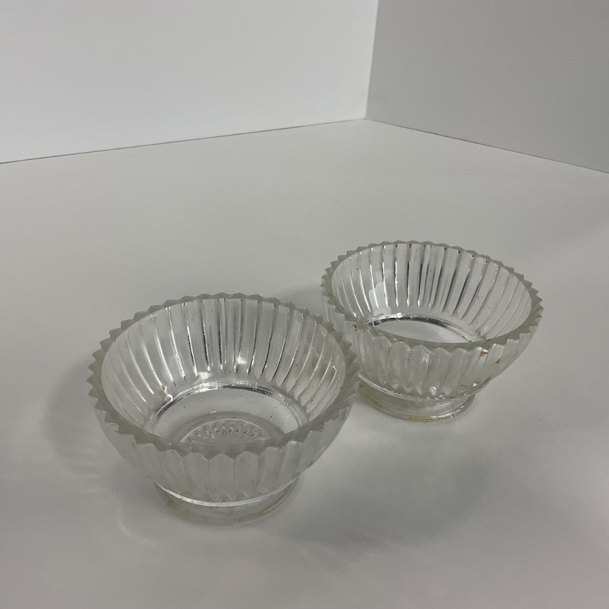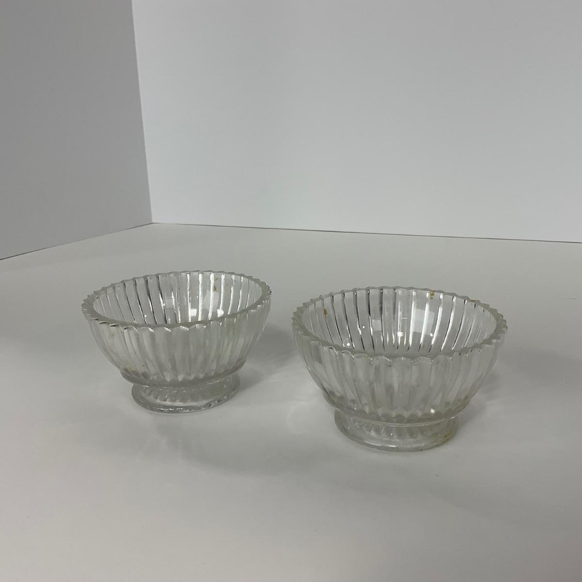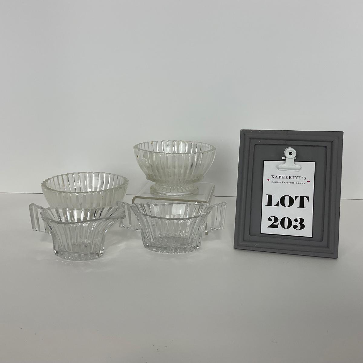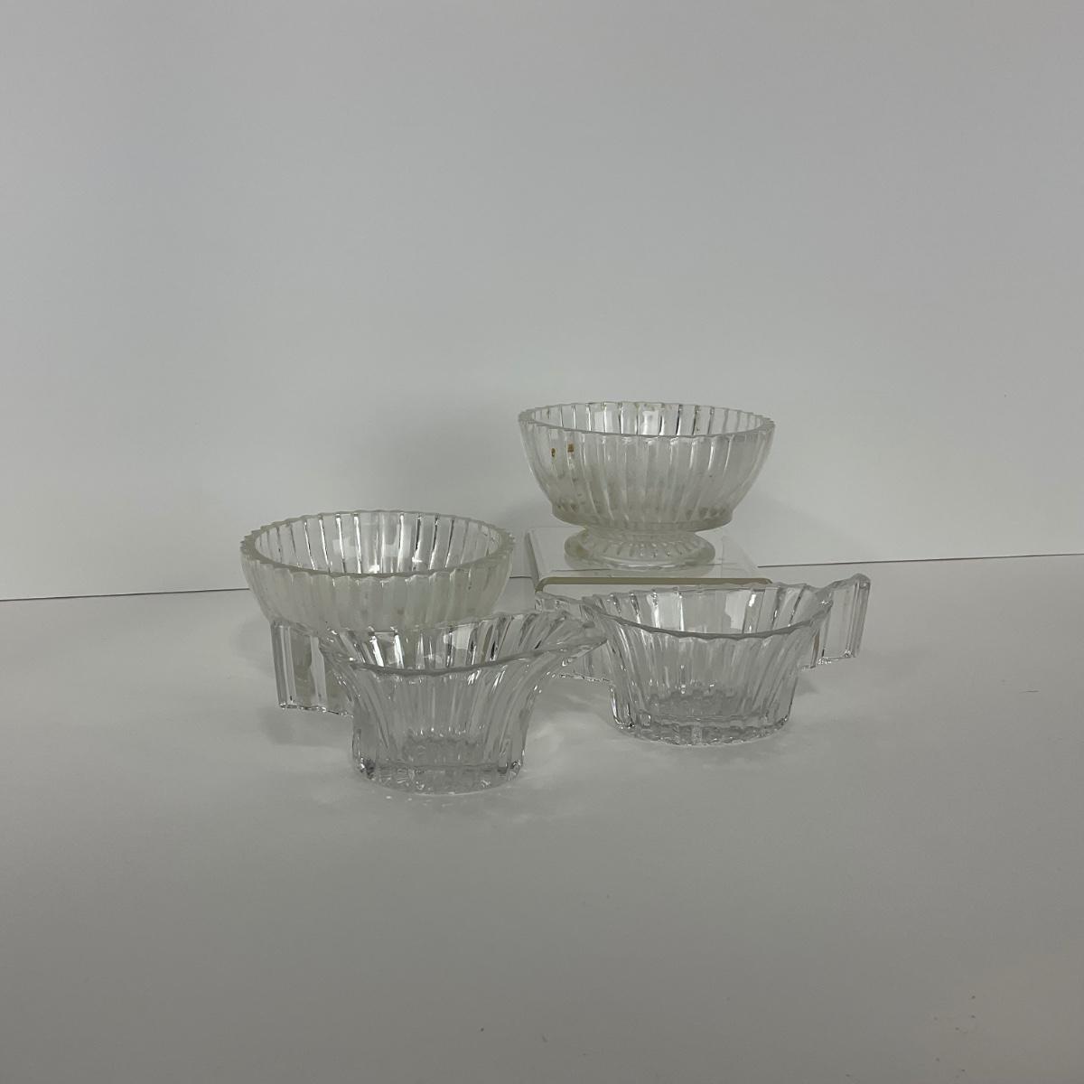 Four pieces of clear glass including one Heisey Glass Creamer & Sugar set and two Queen Mary Glass Sherbets. Please see photos for details and condition. ::: Shipping is available on this lot. If you require shipping you must let us know at the close of the auction. We will coordinate with you after the item has been won. Shipping fees will include insurance up to or exceeding the value of all items being mailed. If you have any questions regarding this lot please contact the auctioneer either via this website, by direct email or by phone. PICK UP TIMES and other important information can be found in the TERMS and DESCRIPTION of the auction. Please take a look for pertinent information. Thanks!