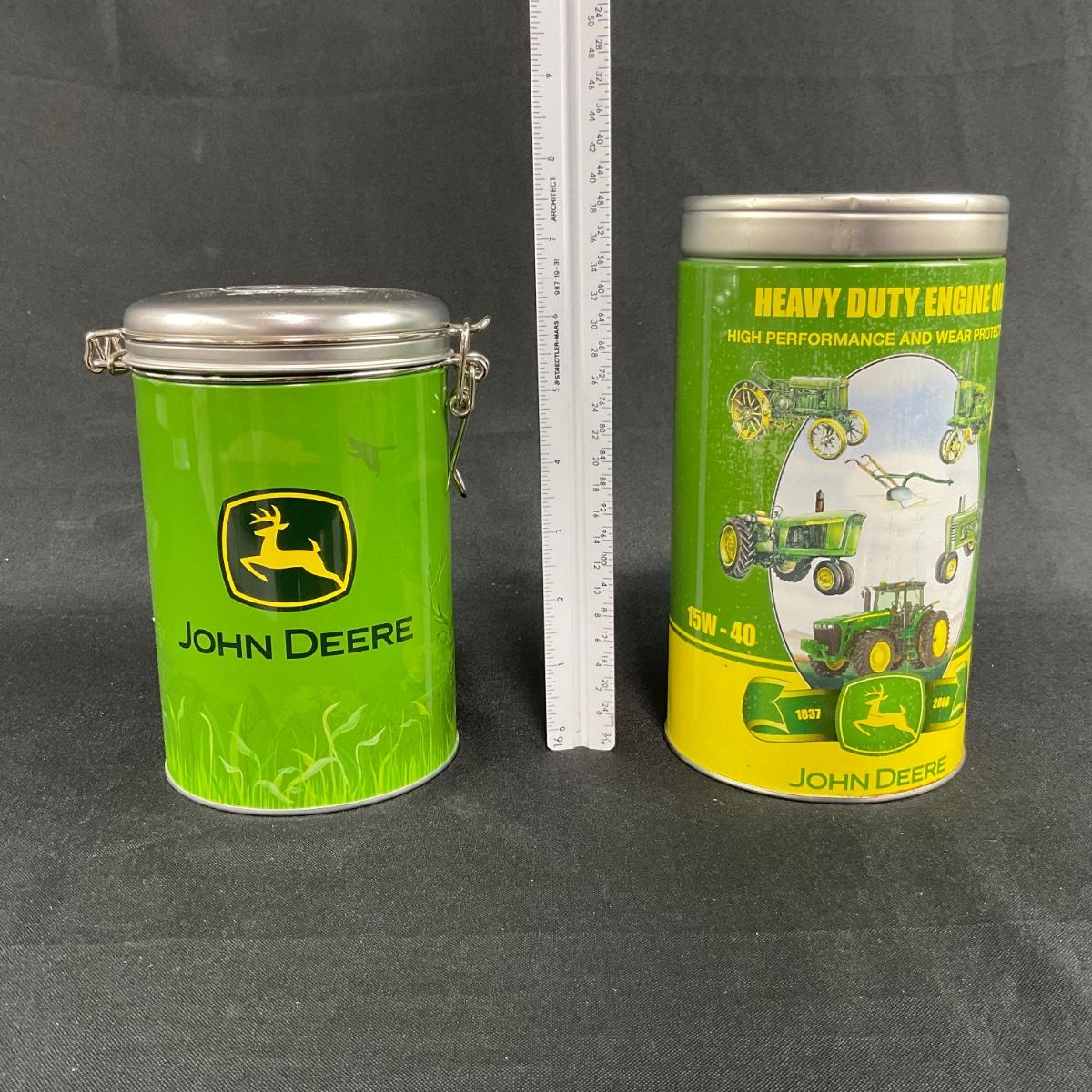 Two John Deere metal tins one is a bank, they have some scuffs and minor marks. Please see photos for details and condition. Any condition statement is given as a courtesy to a client, is an opinion, and should not be treated as a statement of fact. Reference to condition written, oral or within a condition report shall not be regarded as a full account of condition and may not include all defects, alterations, or restorations. Absence of a condition report does not imply a lot is flawless or lacking imperfections or damage. Katherine’s Auction & Appraisal Service shall have no responsibility for any error or omission. Returns shall not be accepted on the basis of condition. ::: Shipping is available on this lot. If you require shipping you must let us know at the close of the auction. We will coordinate with you after the item has been won. Shipping fees will include insurance up to or exceeding the value of all items being mailed. If you have any questions regarding this lot please contact the auctioneer either via this website, by direct email or by phone. PICK UP TIMES and other important information can be found in the TERMS and DESCRIPTION of the auction. Please take a look for pertinent information. Thanks!