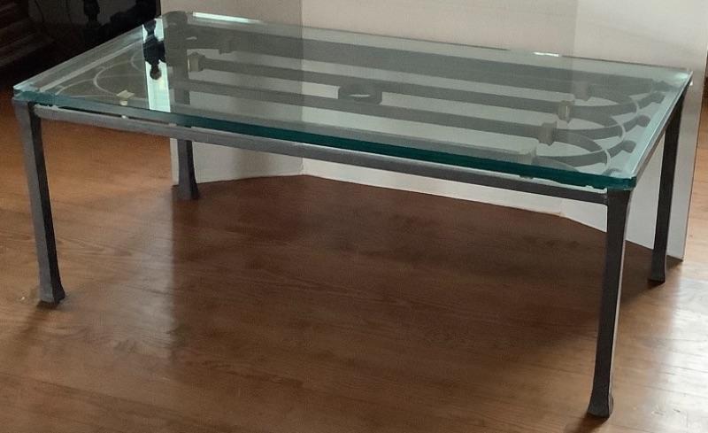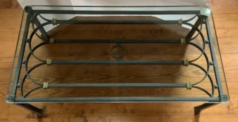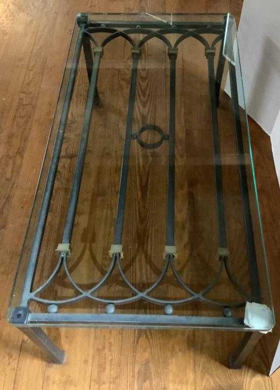 2036 Glass Top Wrought Iron and Brass Gate Design Coffee Table