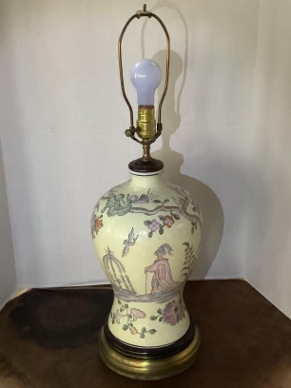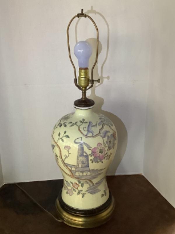 Bulbous shape vintage Asian lamp measures 28-1/2” high, missing finial for lampshade