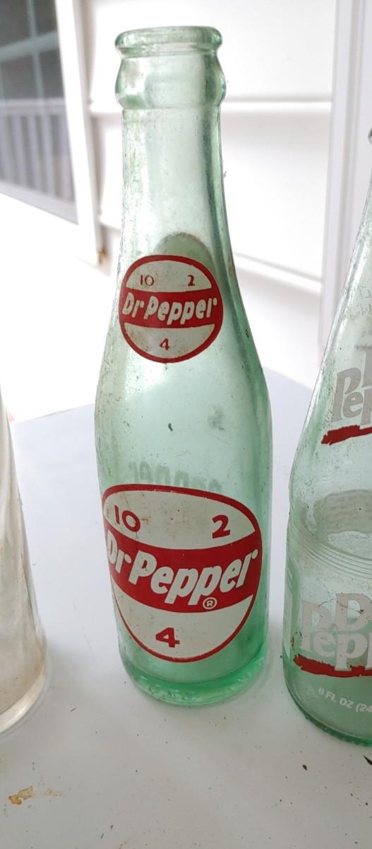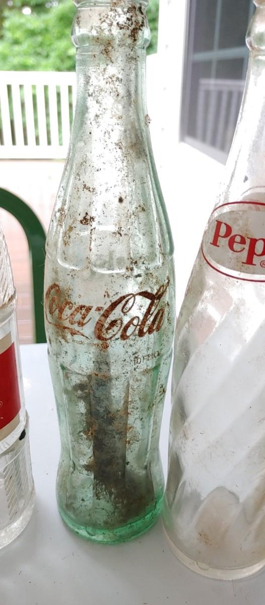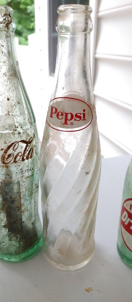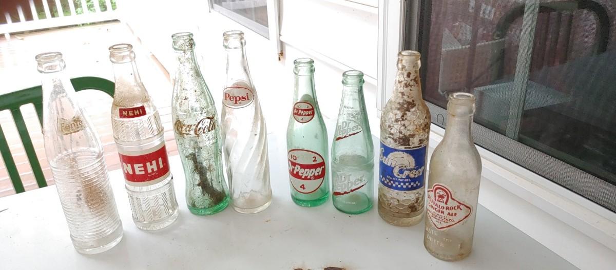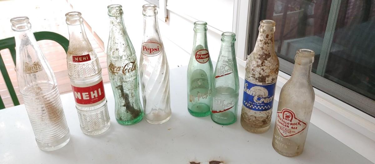 #204 (7) Vintage Soda Bottles most were dug up & some need a good cleaning. All the classic favorite drinks!