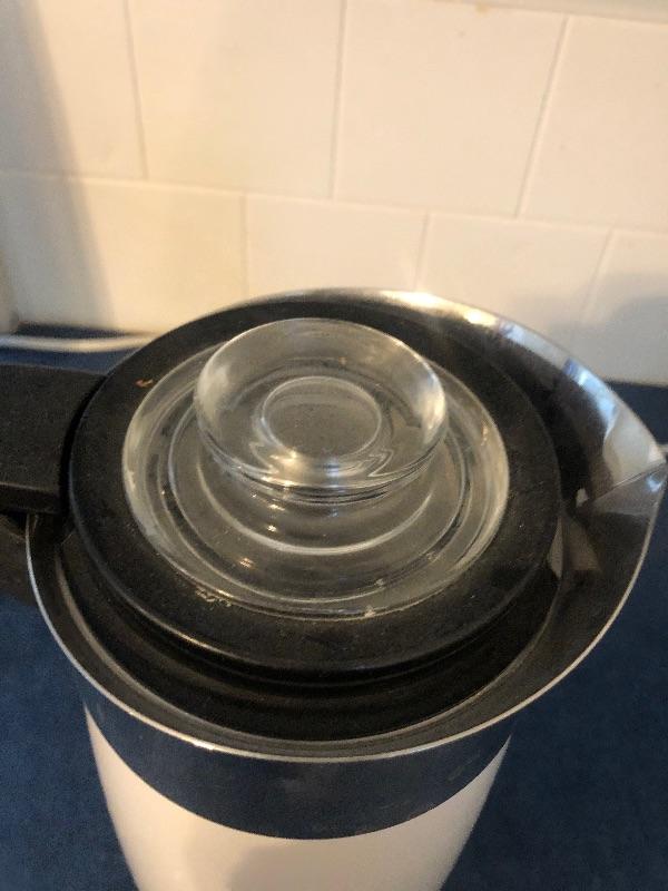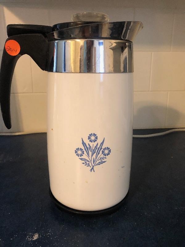 Vintage used condition cute craft fairly clean with surface protector plate. Great condition. Does not have the basket or stem to perc coffee. This is an ONSITE Auction all items will need to be picked up on location. Please see auction description for pick up procedures.