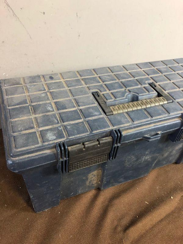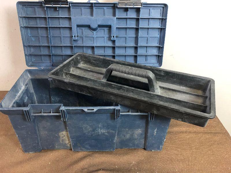 Does have a tray. Dirty needs cleaned 20 x 9 x 9