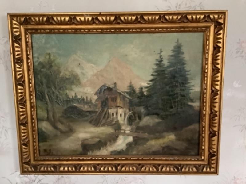 2042 Oil Painting on Canvas of Mill Signed R.S.