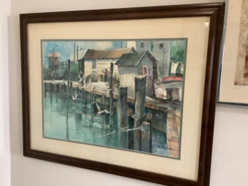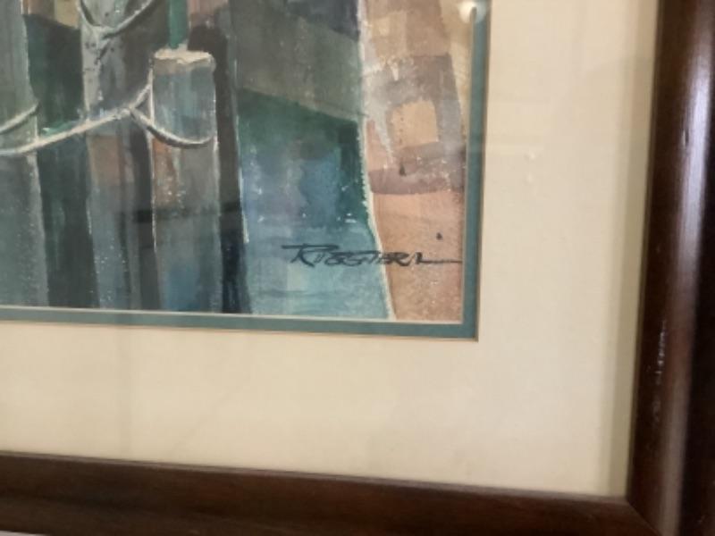 2044 Ruggieri Signed Watercolor Painting “Birds By The Dockside”