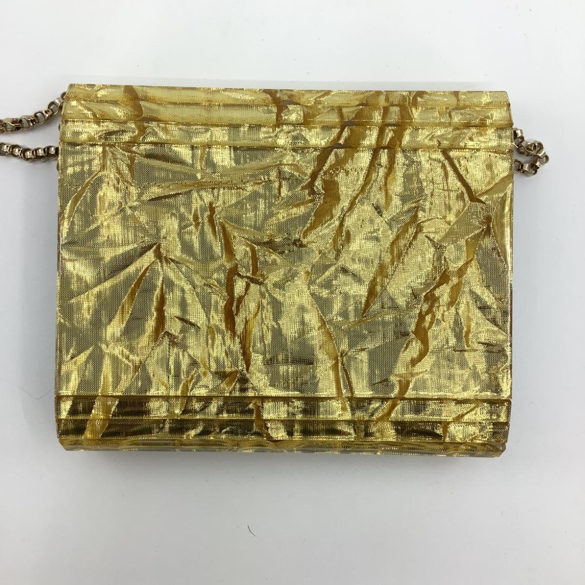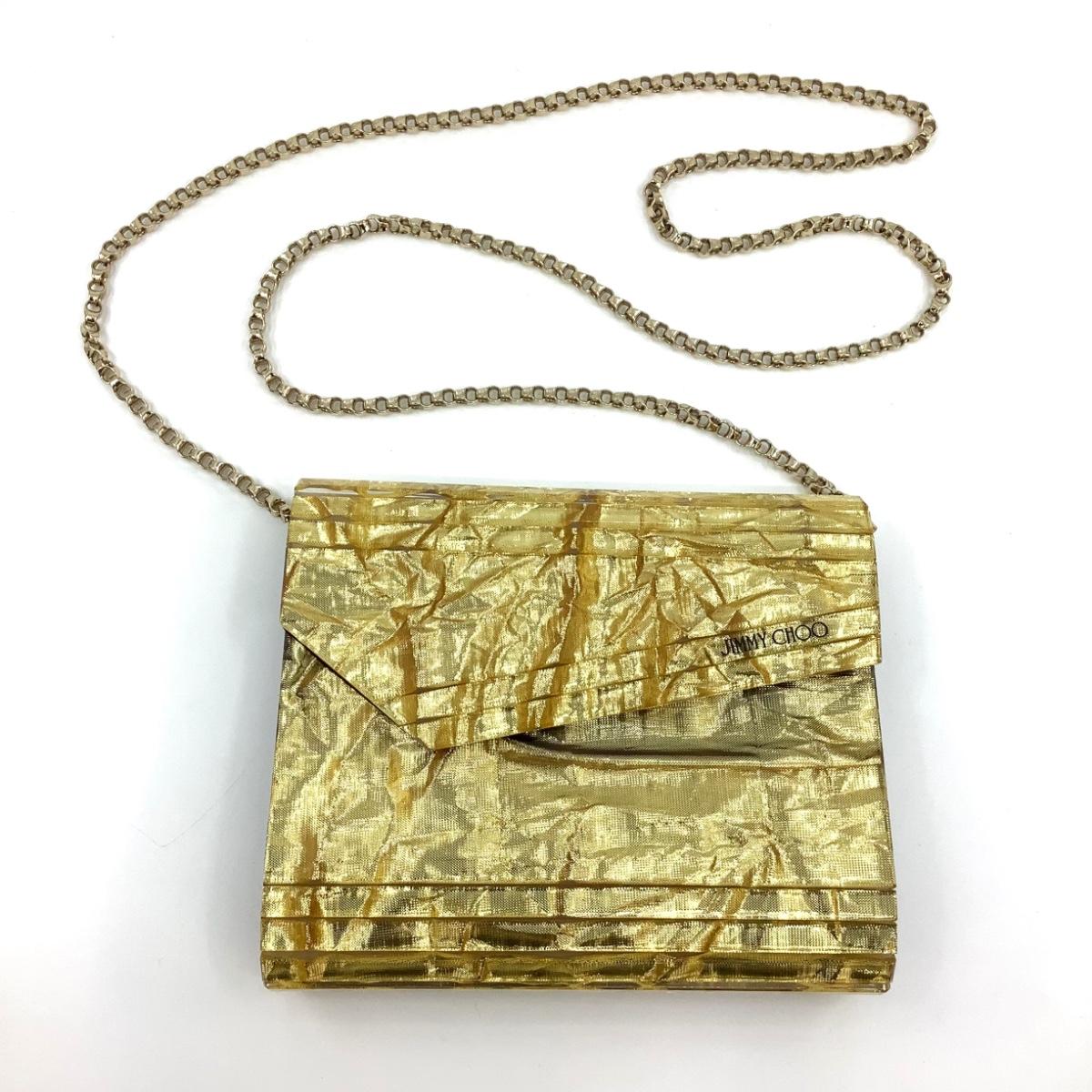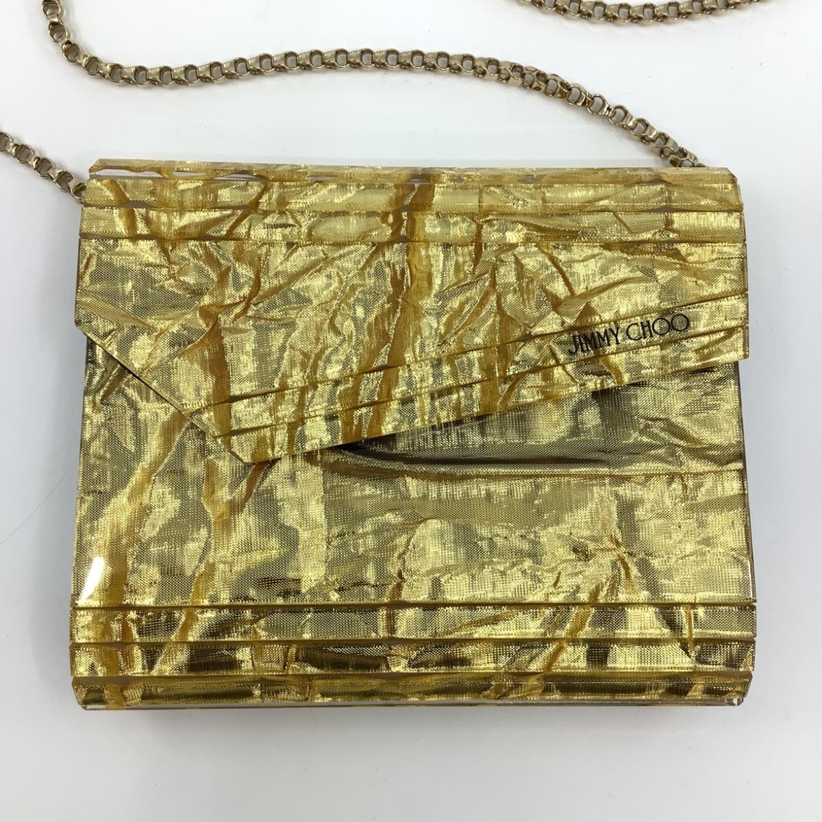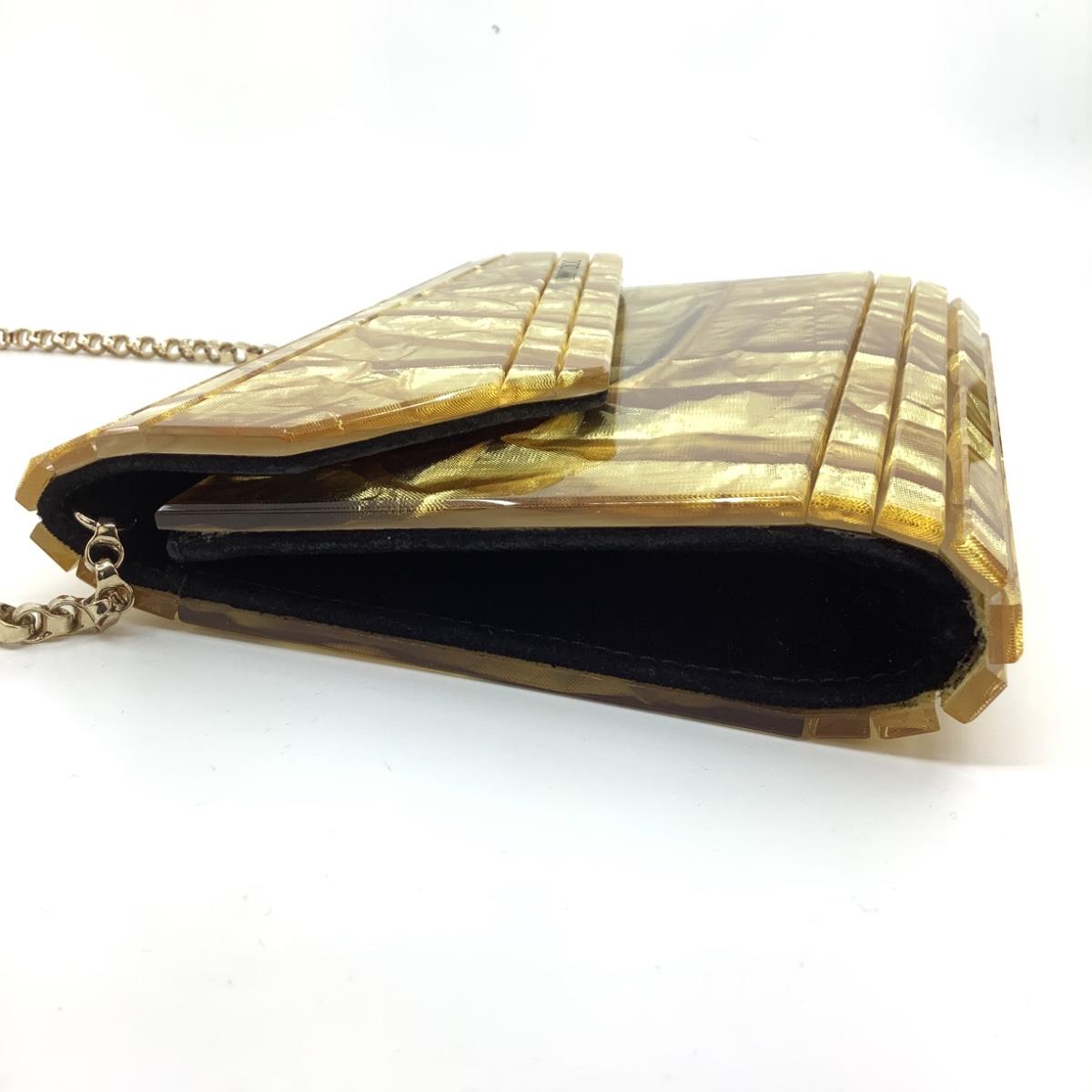 205 JIMMY CHOO Gold Glitter Acrylic Candy Clutch Bag