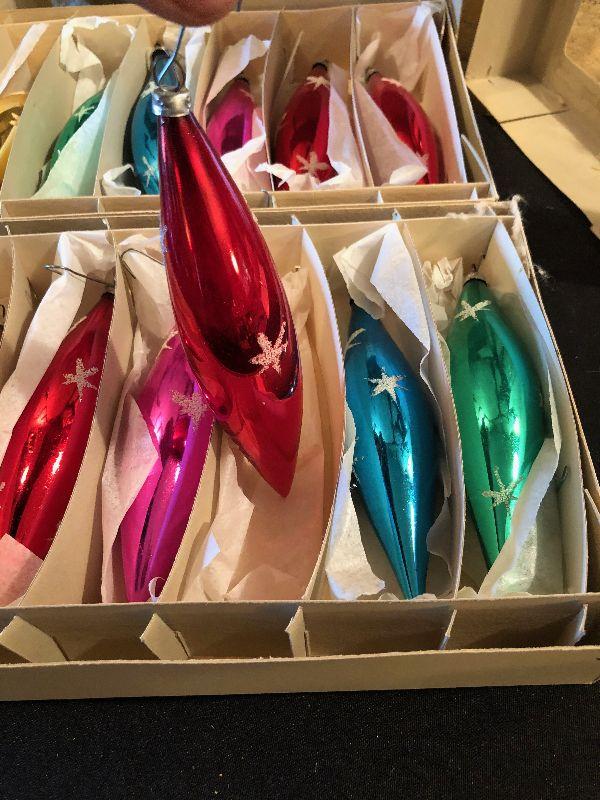 #205 2 Boxes of Vintage Christmas Ornaments Tear Drop Multi