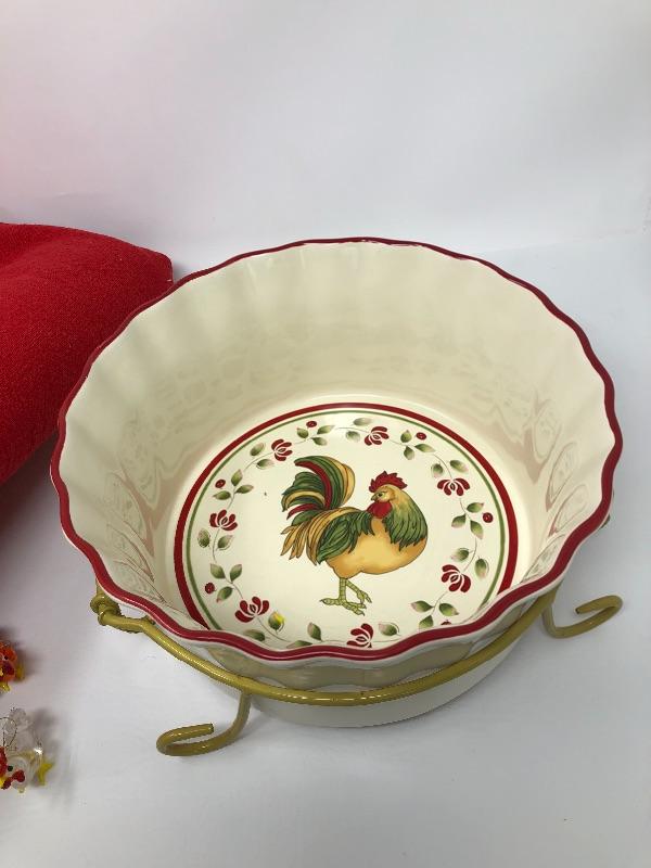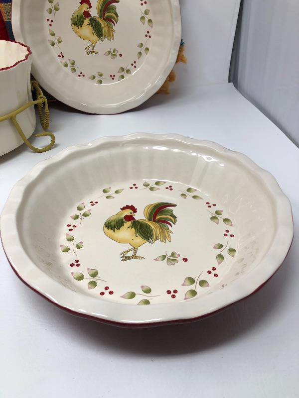 Royal Doultan Pie Plates, Casserole Bowl and Other Chicken Decor.
