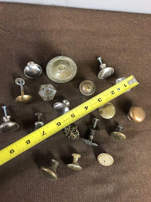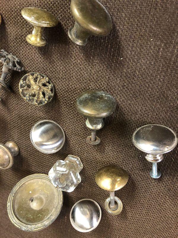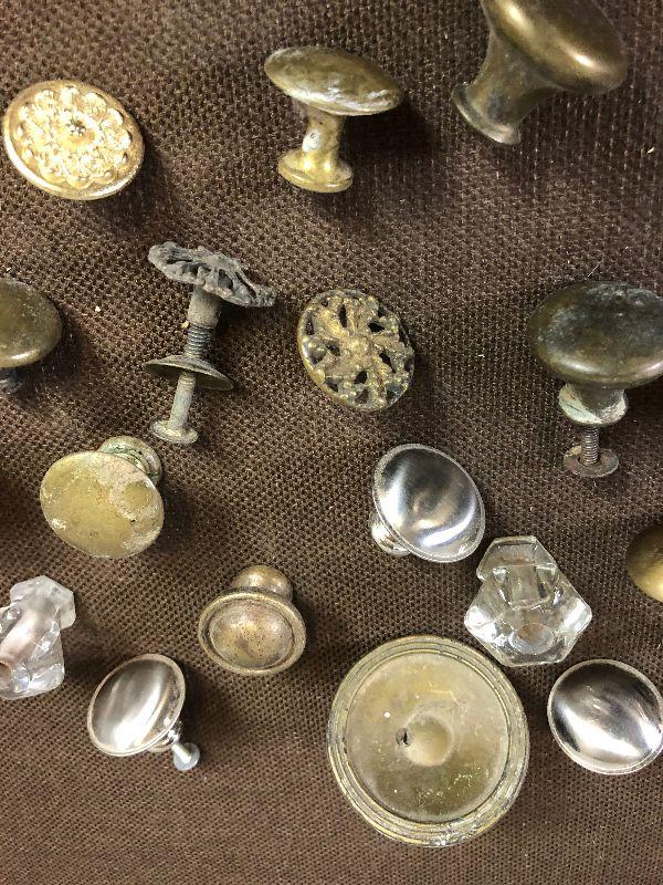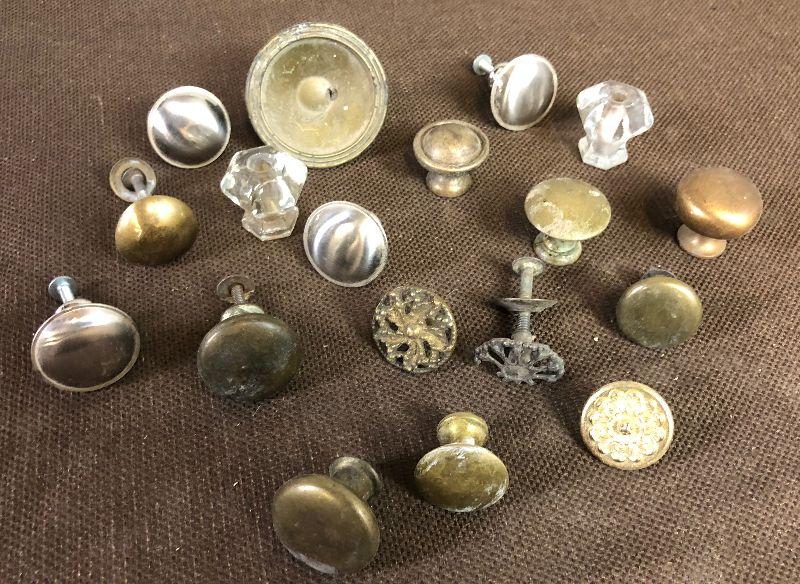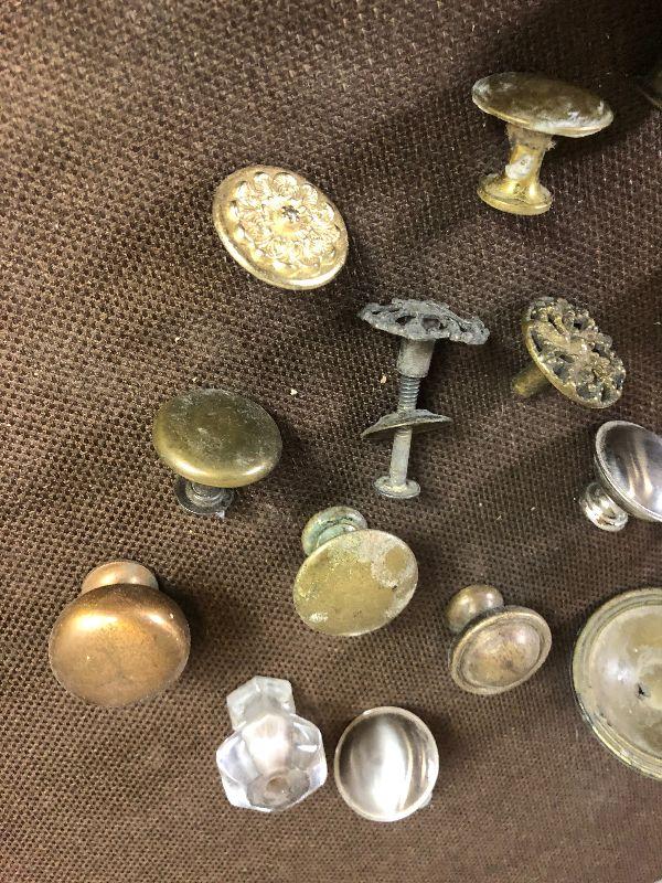 #205 ANTIQUE GLASS, PLASTIC AND BRASS: KNOBS