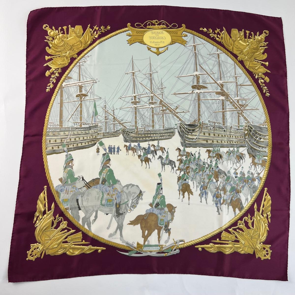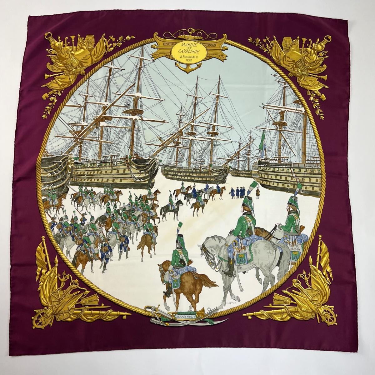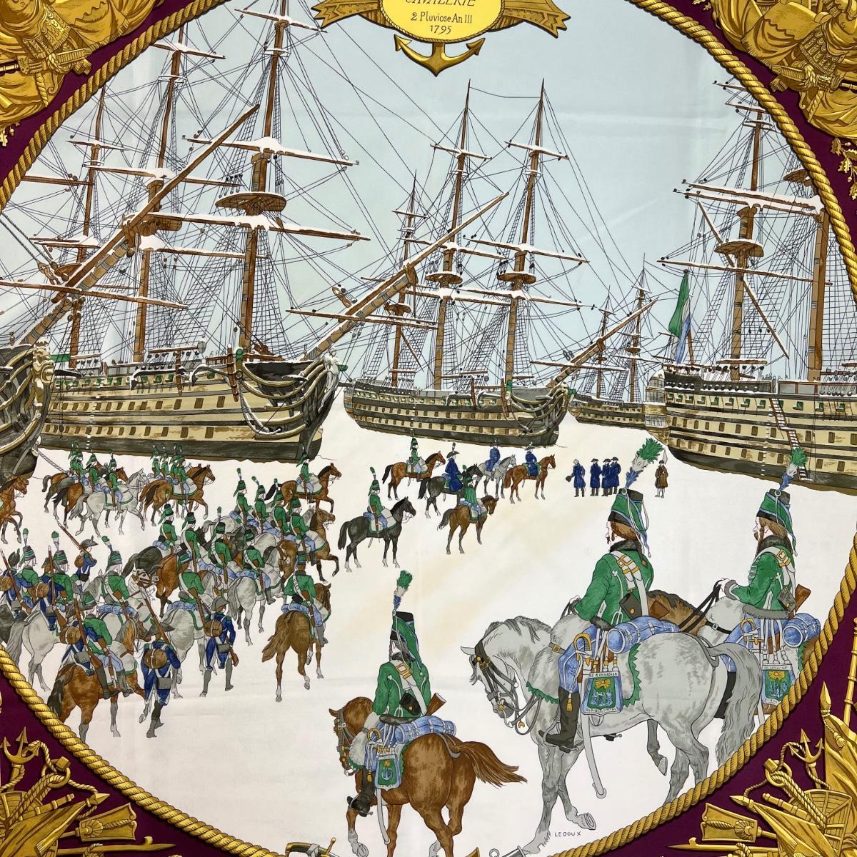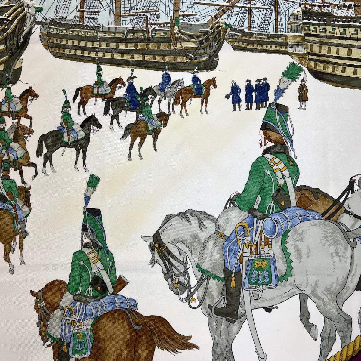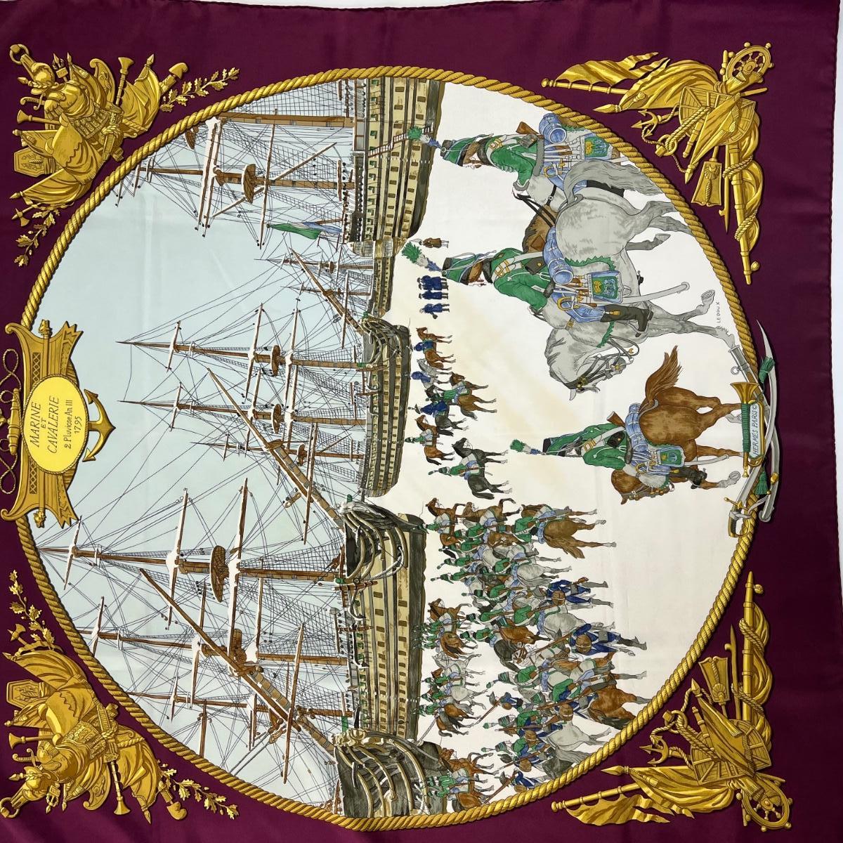 205 Authentic HERMÈS Carre 90 Silk Scarf Marine Et Cavalerie by Philippe Ledoux 1967