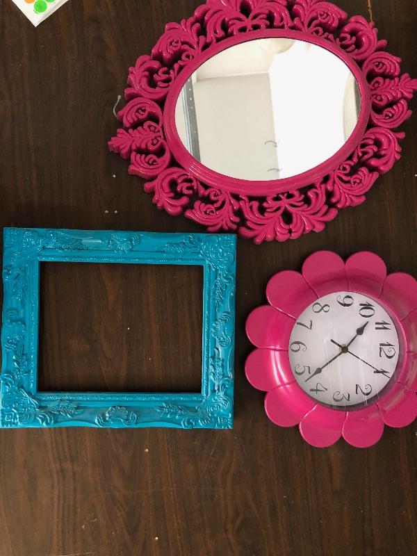Bundle includes mirror measuring 19 x 15 empty frame measuring 13 x 11 and 12 inch clock good used condition. This is an ONSITE Auction all items will need to be picked up on location. Please see auction description for pick up procedures.