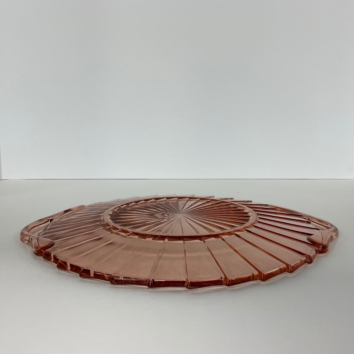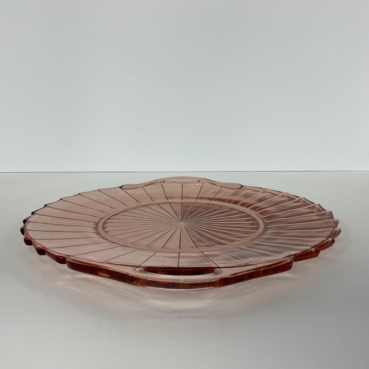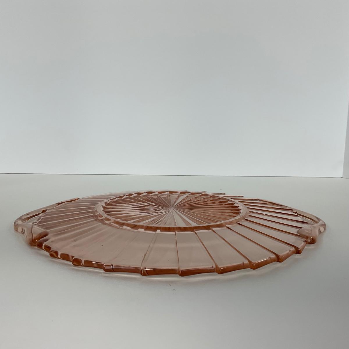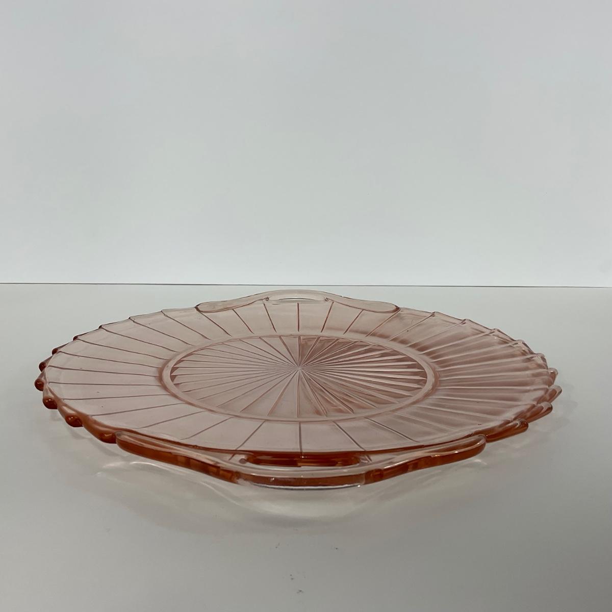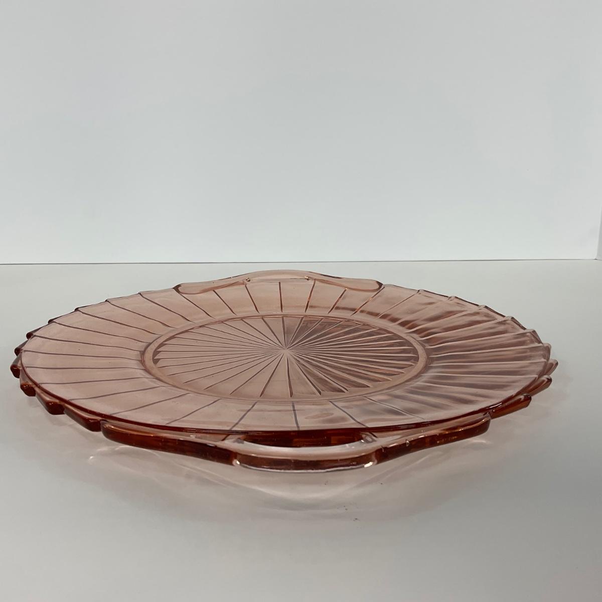 Two pink depression glass Sierra Pinwheel Jeanette Glass Co. (1931-1933) handled tray. Please see photos for details and condition. ::: Shipping is available on this lot. If you require shipping you must let us know at the close of the auction. We will coordinate with you after the item has been won. Shipping fees will include insurance up to or exceeding the value of all items being mailed. If you have any questions regarding this lot please contact the auctioneer either via this website, by direct email or by phone. PICK UP TIMES and other important information can be found in the TERMS and DESCRIPTION of the auction. Please take a look for pertinent information. Thanks!