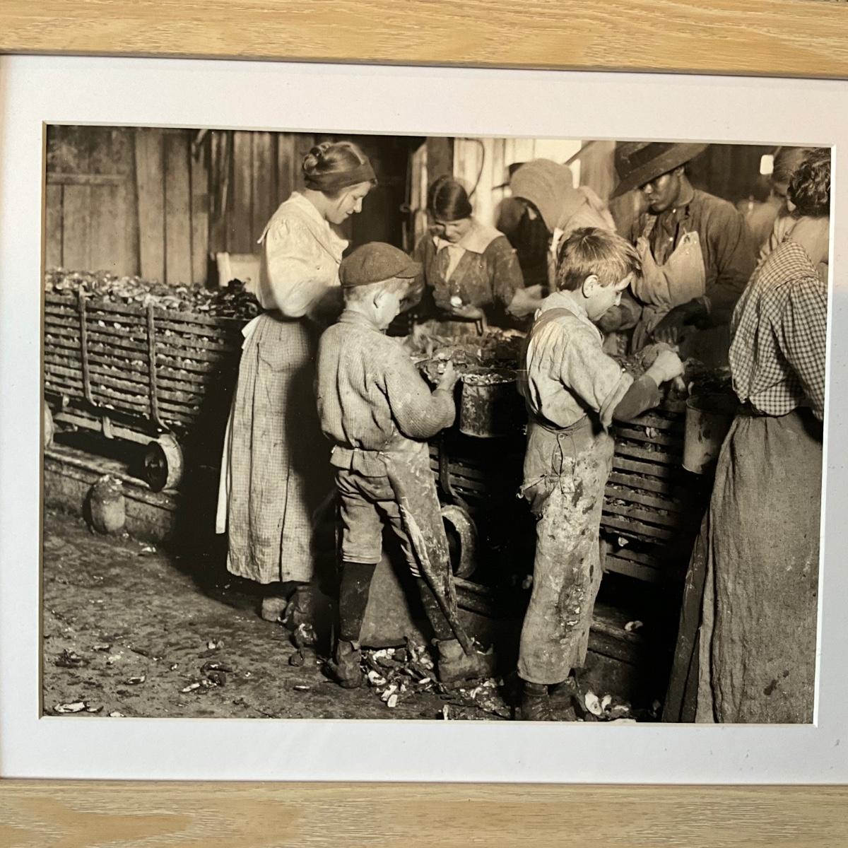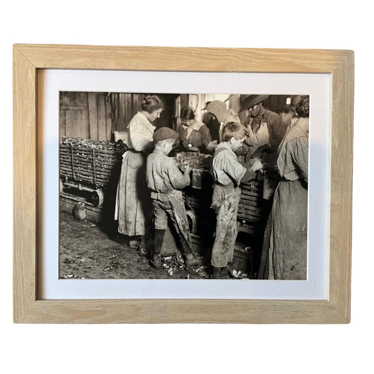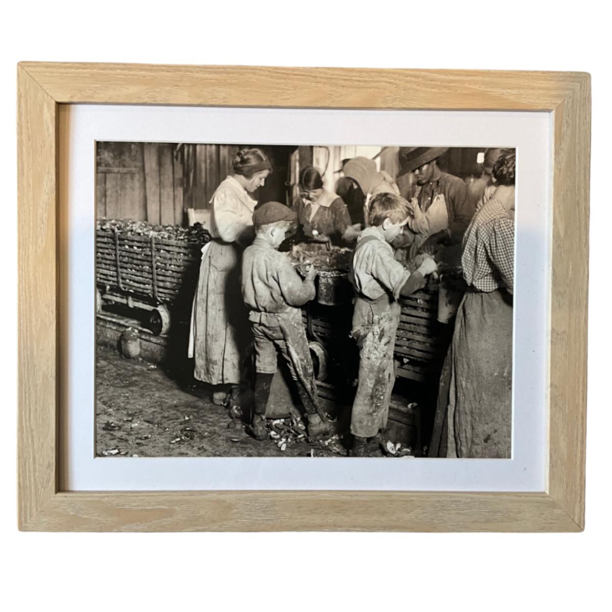 205 Vintage Black & White 1913 Oyster Shuckers Framed Photograph by Lewis Hines