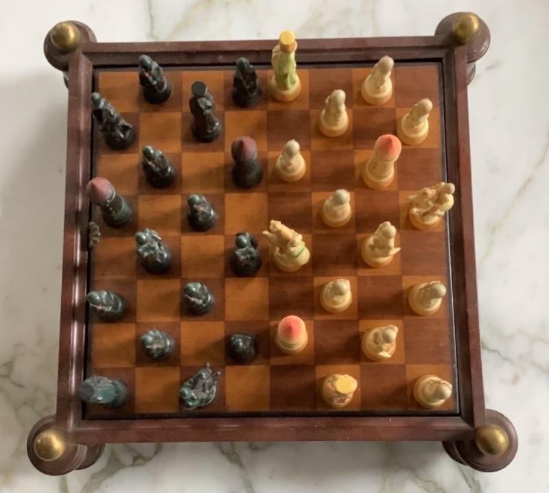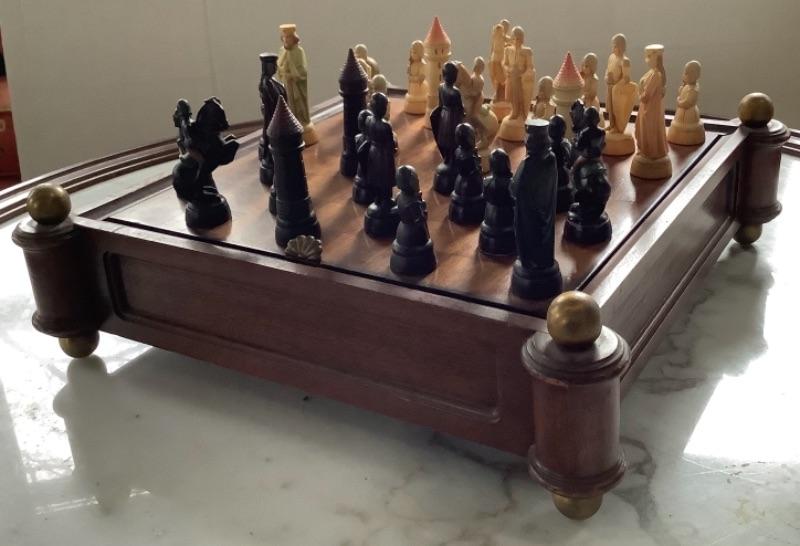 2051 Vintage Anri Charlemagne Chess Set With Brass Ball Feet
