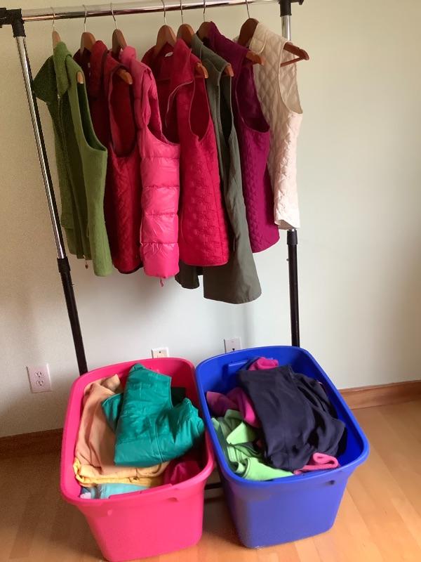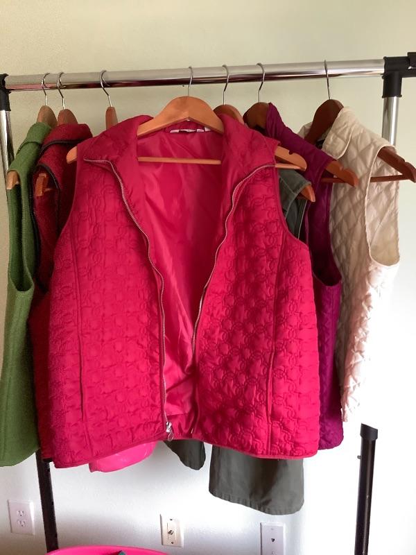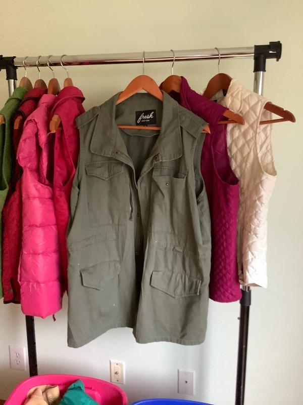 2 buckets full of women’s L and XL vests. Great for the unpredictable spring weather