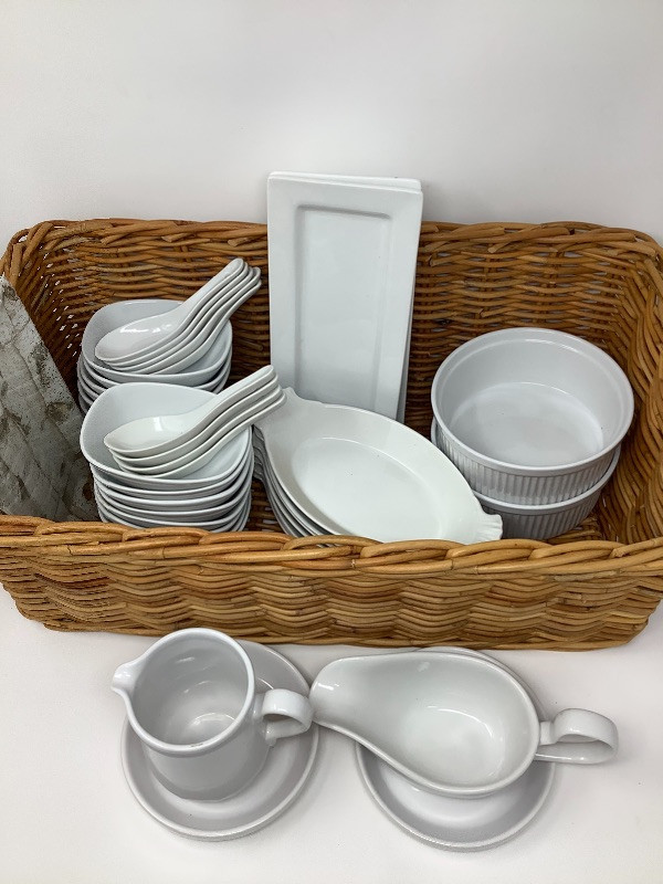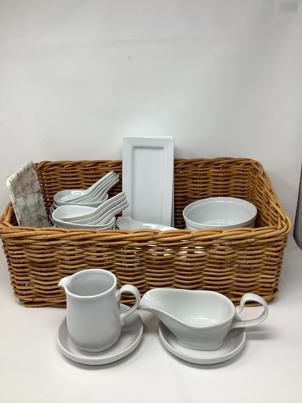 Basket of Mixed Brand White Kitchen Items