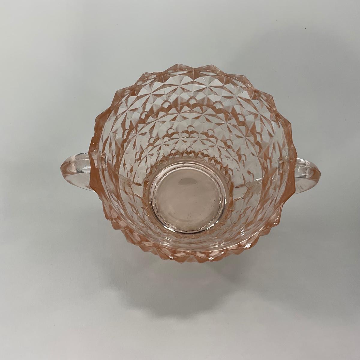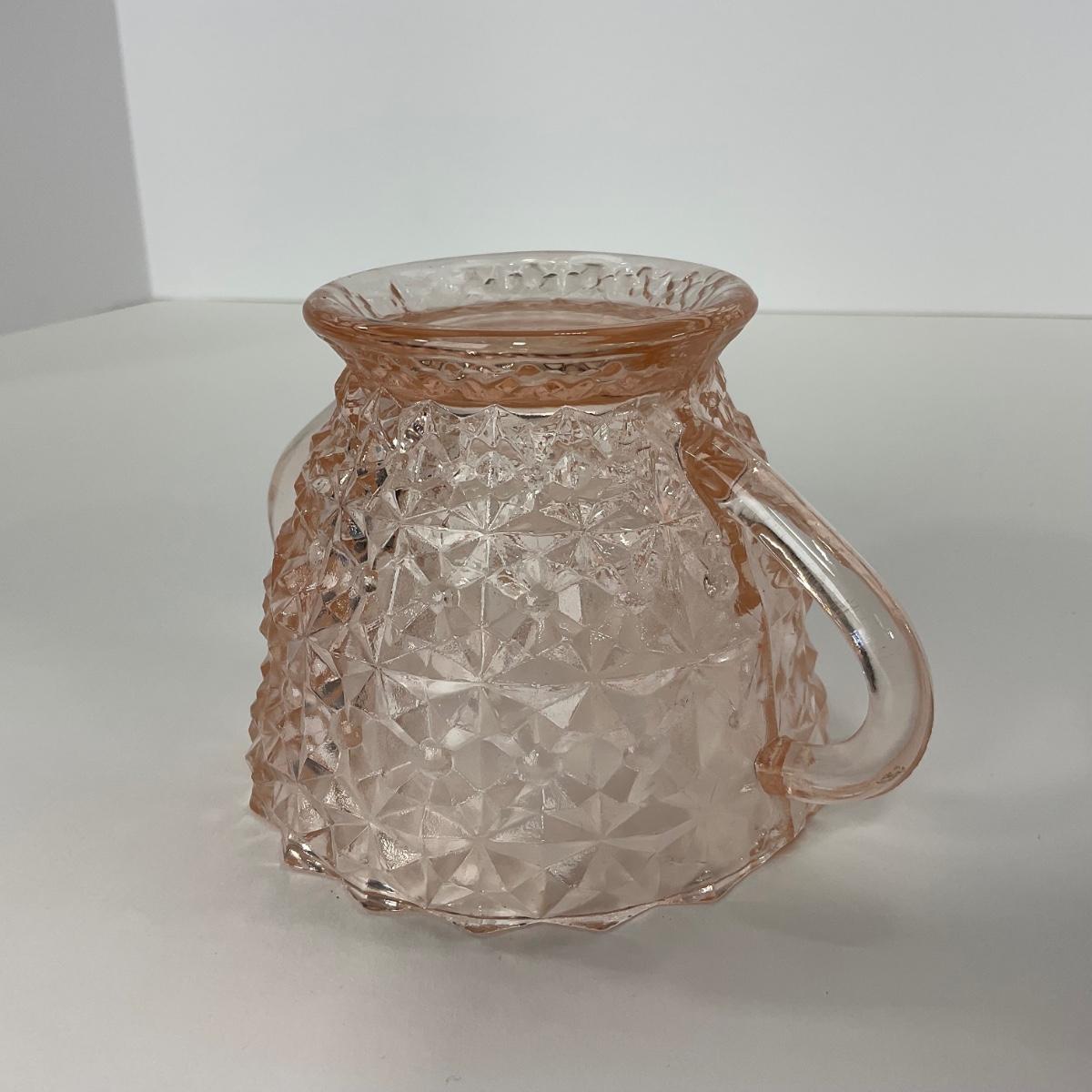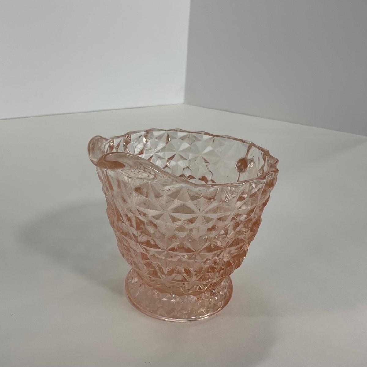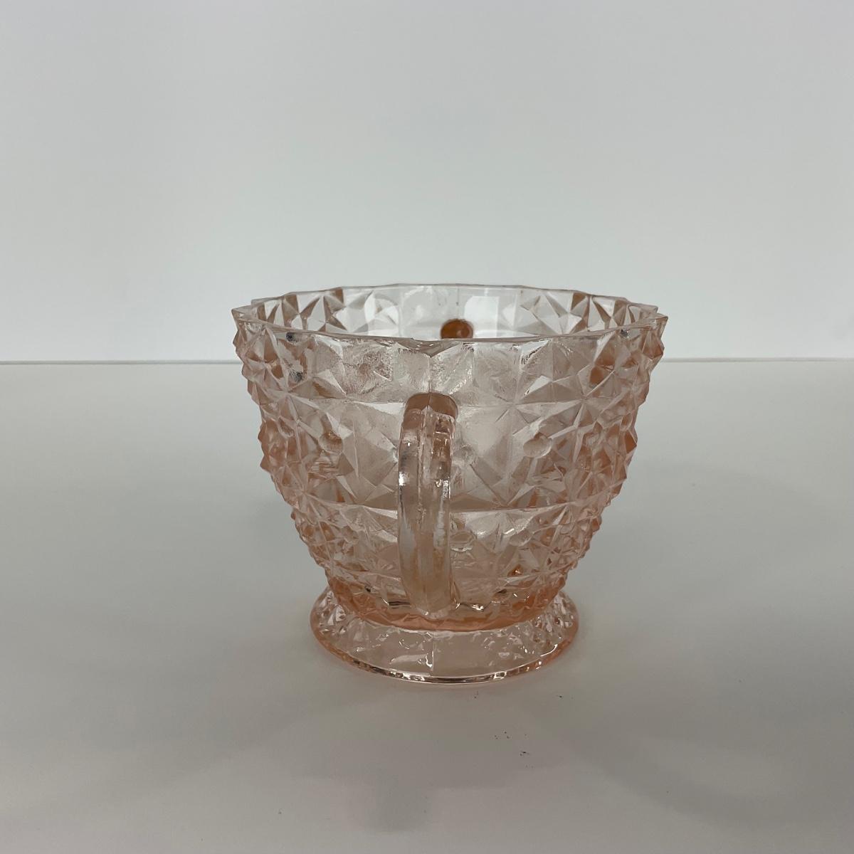 Two pieces of pink Holiday Buttons & Bows Jeanette Glass Co. (1947-1949) including one lidded sugar container and one creamer. Please see photos for details and condition. ::: Shipping is available on this lot. If you require shipping you must let us know at the close of the auction. We will coordinate with you after the item has been won. Shipping fees will include insurance up to or exceeding the value of all items being mailed. If you have any questions regarding this lot please contact the auctioneer either via this website, by direct email or by phone. PICK UP TIMES and other important information can be found in the TERMS and DESCRIPTION of the auction. Please take a look for pertinent information. Thanks!