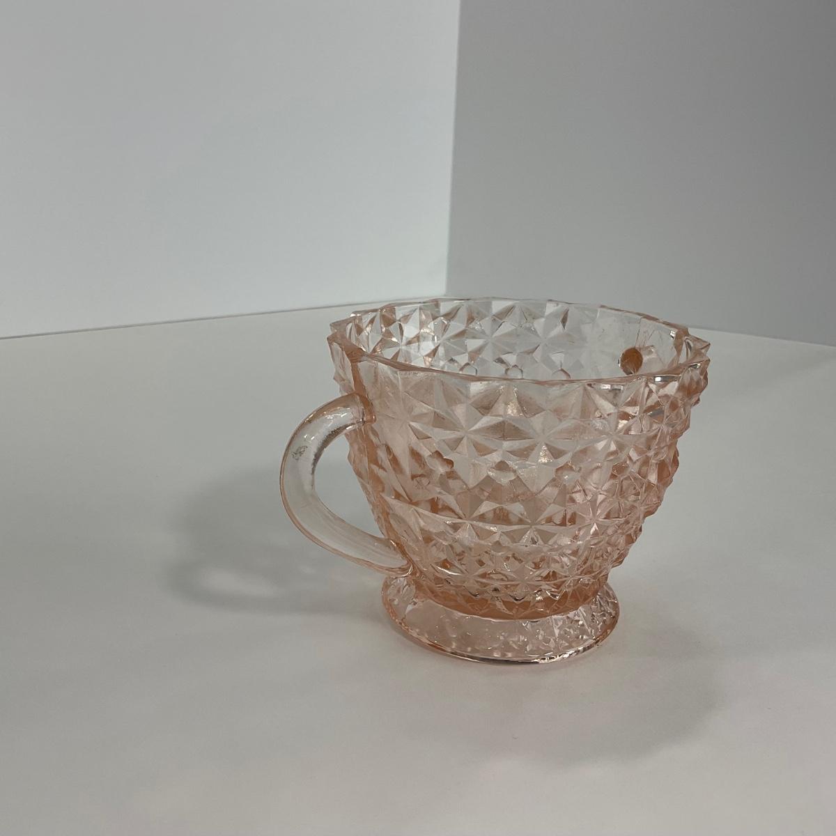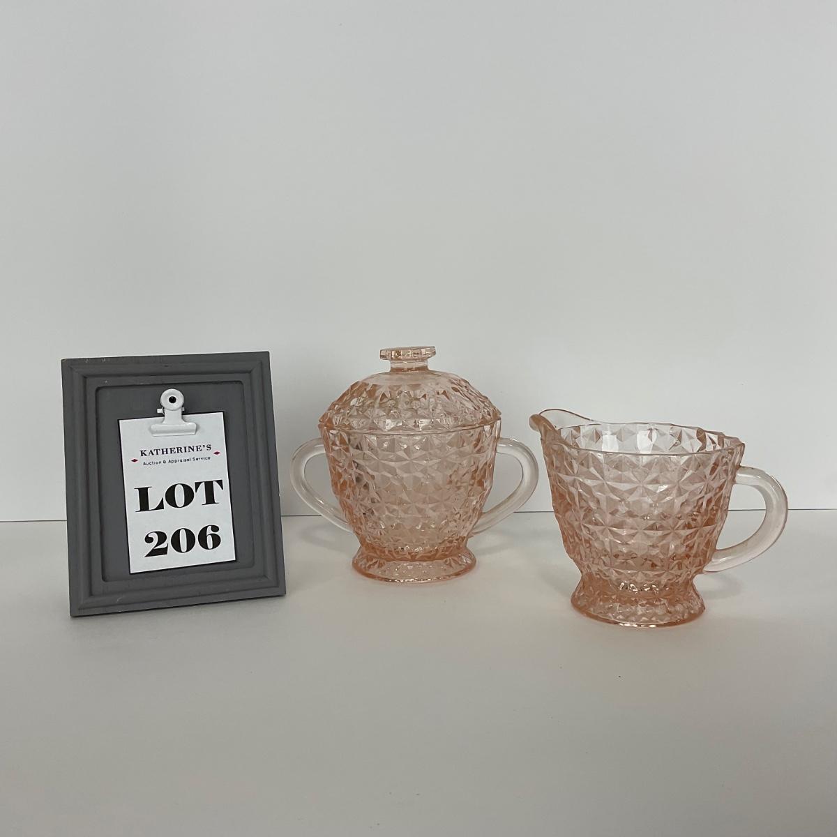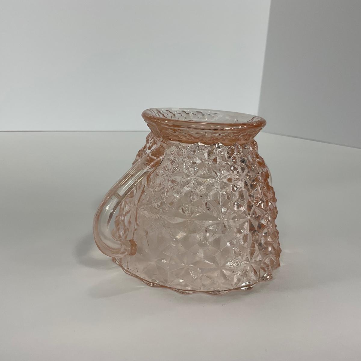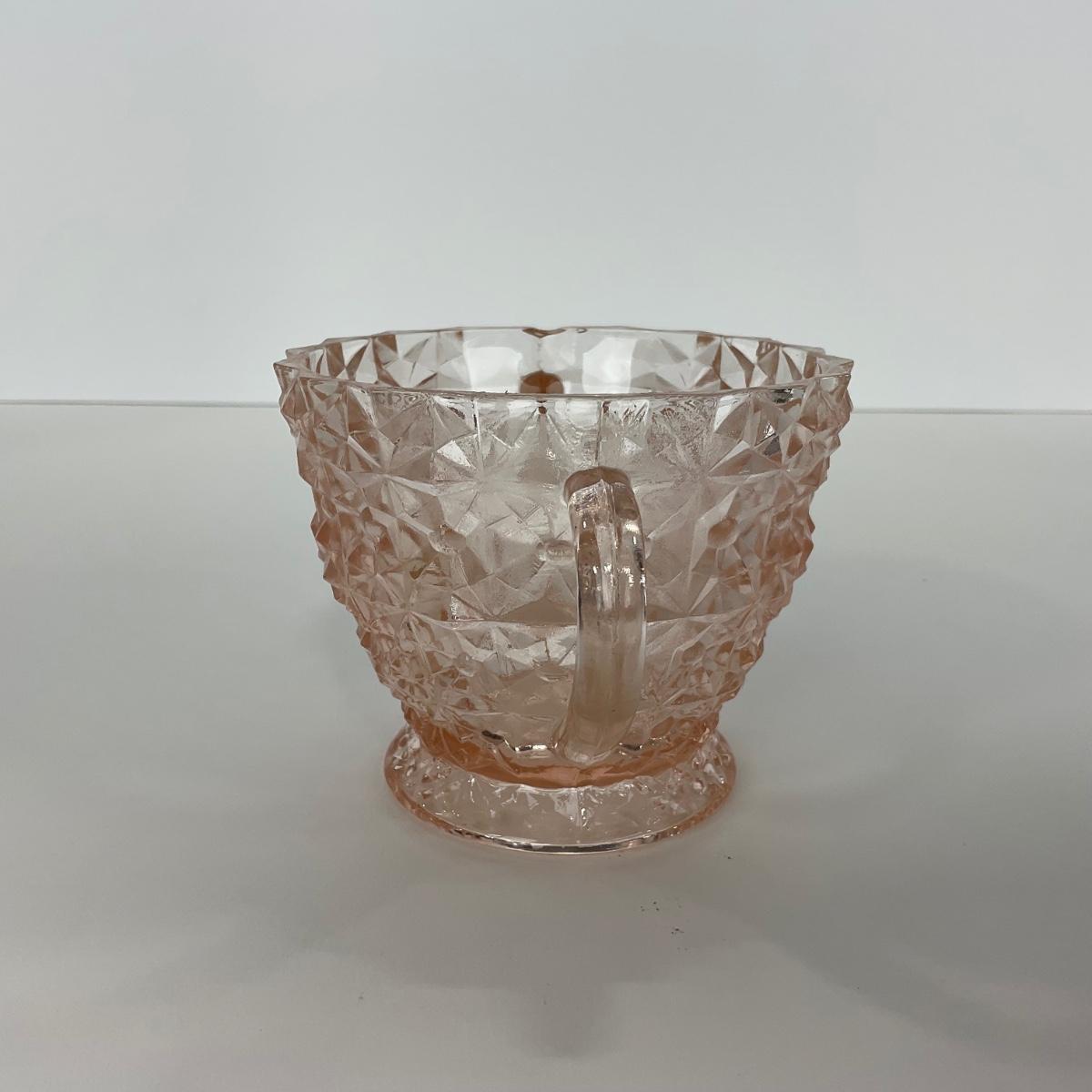 Two pieces of pink Holiday Buttons & Bows Jeanette Glass Co. (1947-1949) including one lidded sugar container and one creamer. Please see photos for details and condition. ::: Shipping is available on this lot. If you require shipping you must let us know at the close of the auction. We will coordinate with you after the item has been won. Shipping fees will include insurance up to or exceeding the value of all items being mailed. If you have any questions regarding this lot please contact the auctioneer either via this website, by direct email or by phone. PICK UP TIMES and other important information can be found in the TERMS and DESCRIPTION of the auction. Please take a look for pertinent information. Thanks!