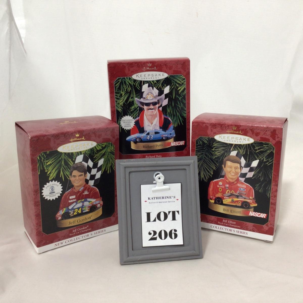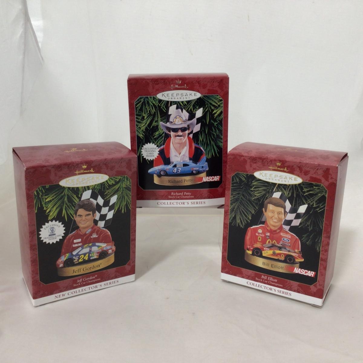 NASCAR Jeff Gordon, Richard Petty, and Bill Elliott Hallmark ornaments with boxes. Please see photos for details and condition. ::: Shipping is available on this lot. If you require shipping you must let us know at the close of the auction. We will coordinate with you after the item has been won. Shipping fees will include insurance up to or exceeding the value of all items being mailed. If you have any questions regarding this lot please contact the auctioneer either via this website, by direct email or by phone. PICK UP TIMES and other important information can be found in the TERMS and DESCRIPTION of the auction. Please take a look for pertinent information. Thanks!