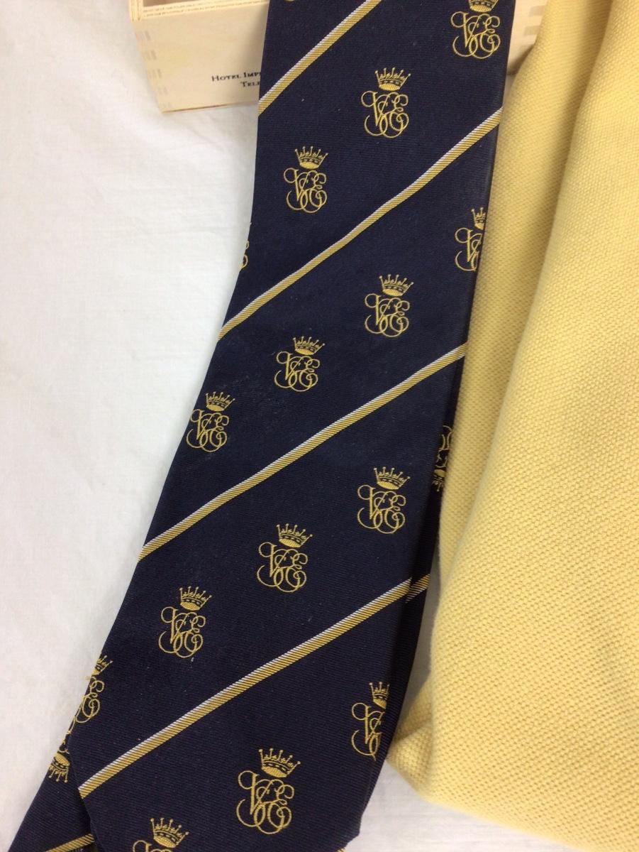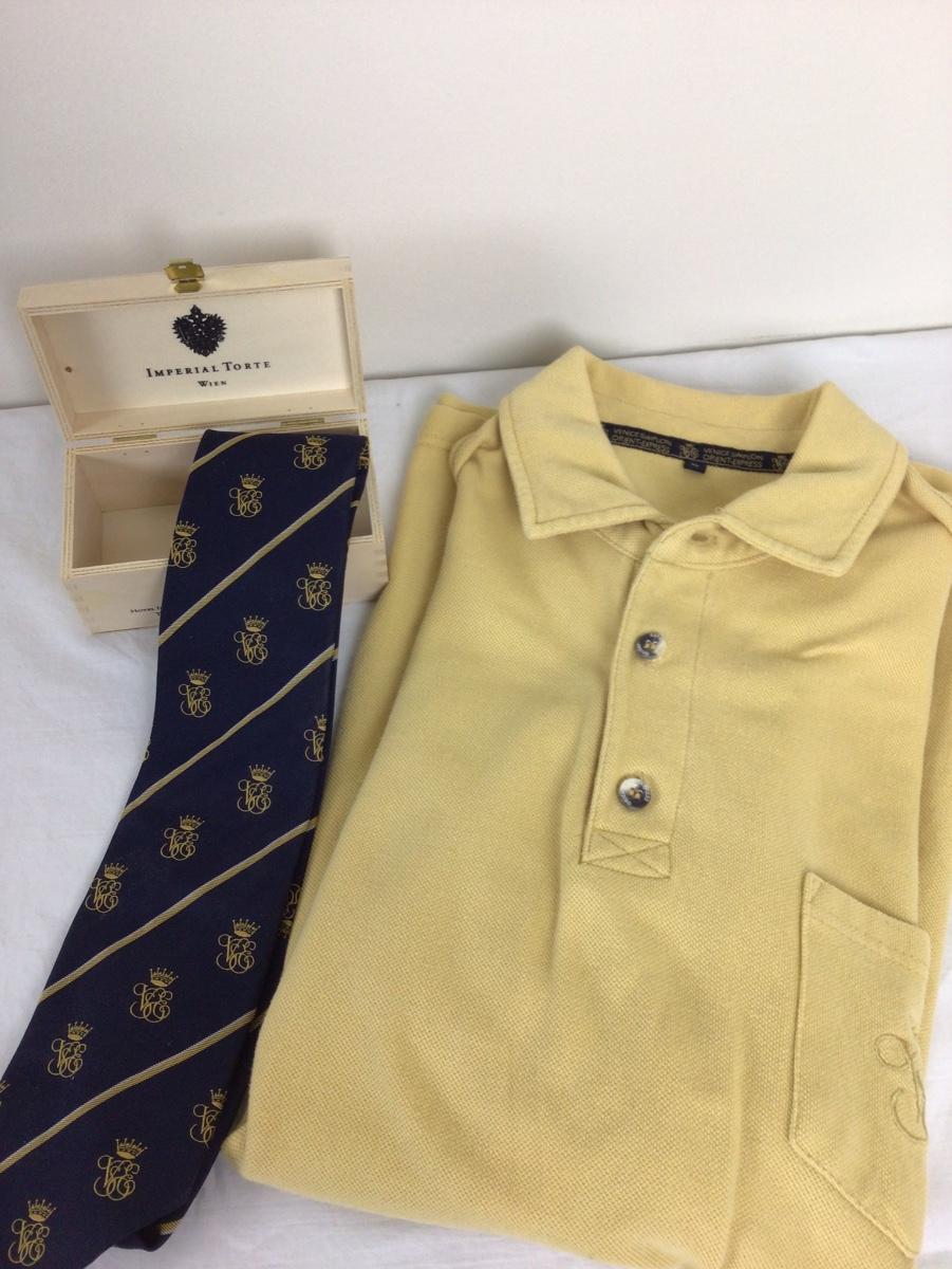 Lot contains xl polo shirt, tie and wooden box.