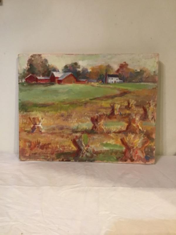 An original oil painting on canvas of a farm scene. Measures 11”x 14”